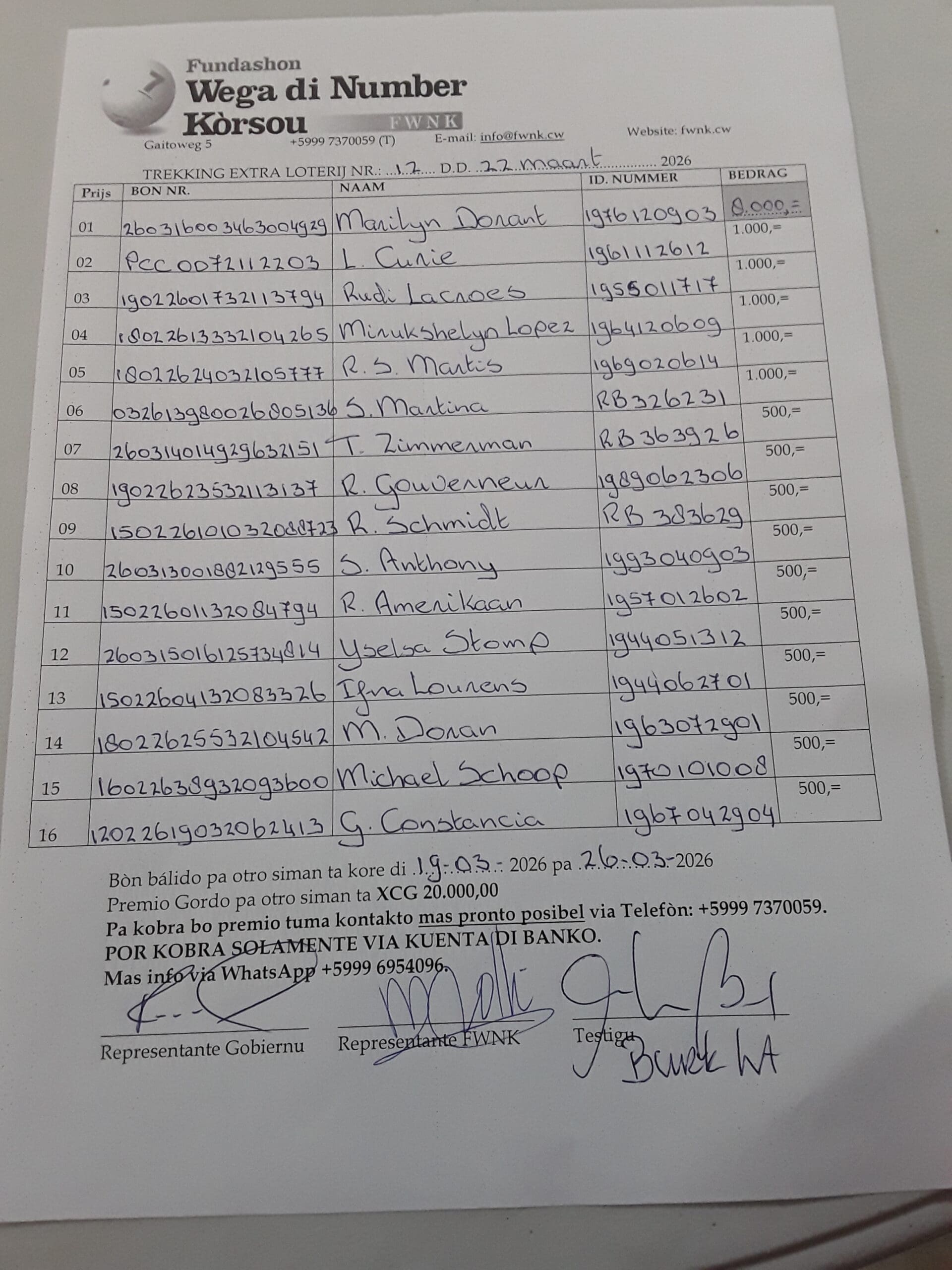 Tur dia 9 pm kon ta partisipá Tur Djadumingu 5:45 pm kon ta partisipá Wega di Number 22 March, 2026 Sorteo Èkstra 22 March, 2026 Choose your date