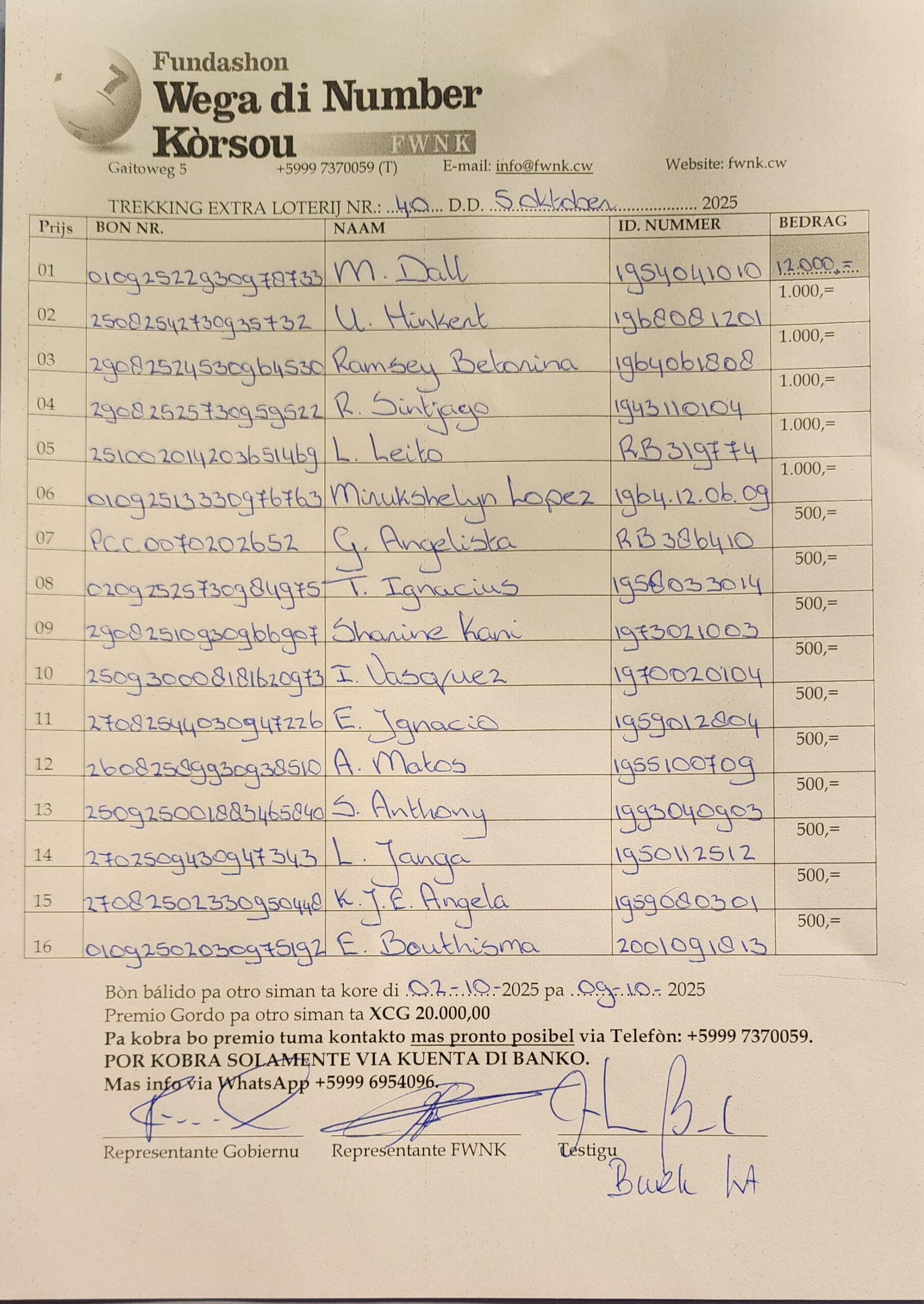 Tur dia 9 pm kon ta partisipá Tur Djadumingu 5:45 pm kon ta partisipá Wega di Number 6 October, 2025 Sorteo Èkstra 5 October, 2025 Choose your date
