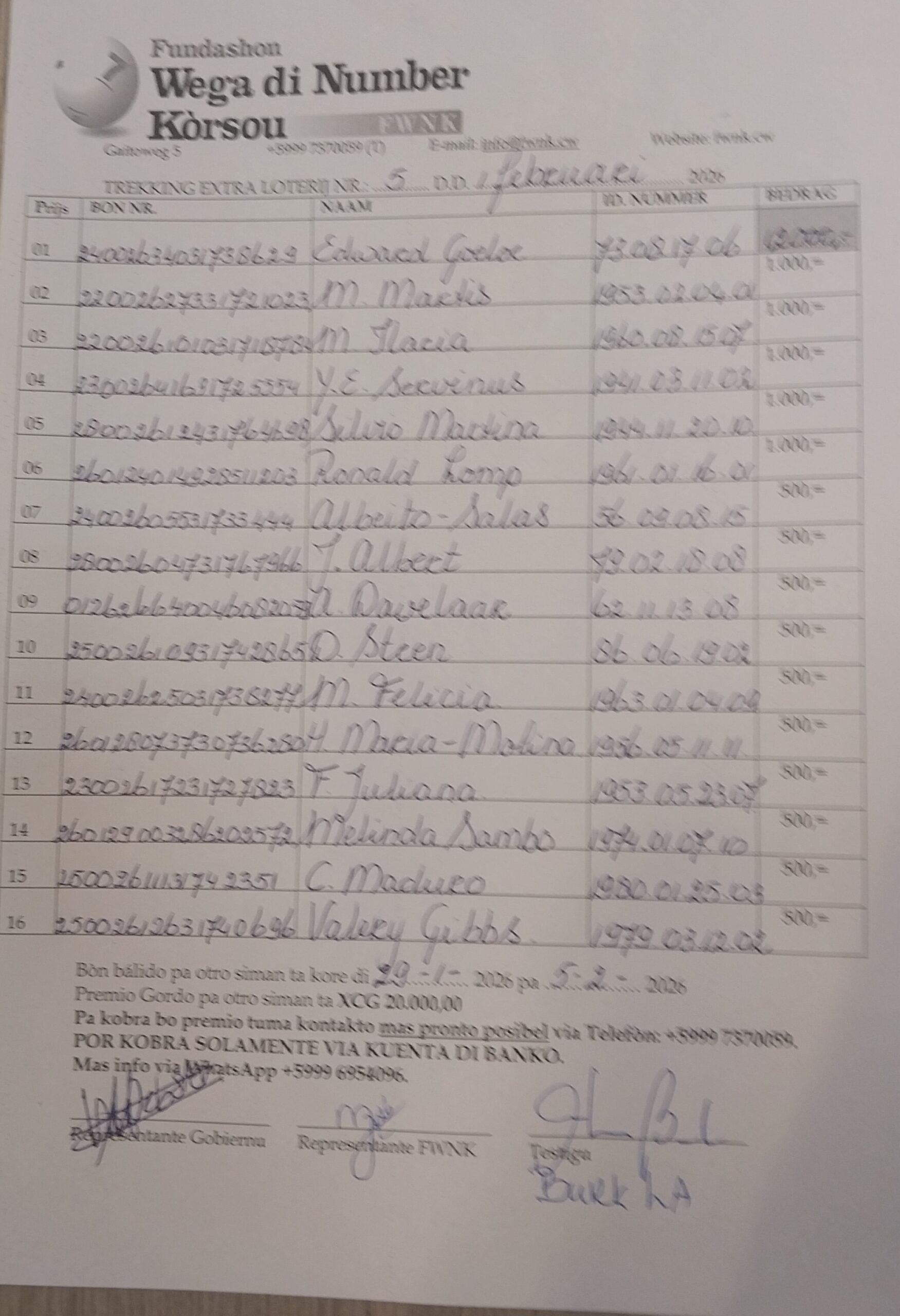 Tur dia 9 pm kon ta partisipá Tur Djadumingu 5:45 pm kon ta partisipá Wega di Number 3 February, 2026 Sorteo Èkstra 1 February, 2026 Choose your date
