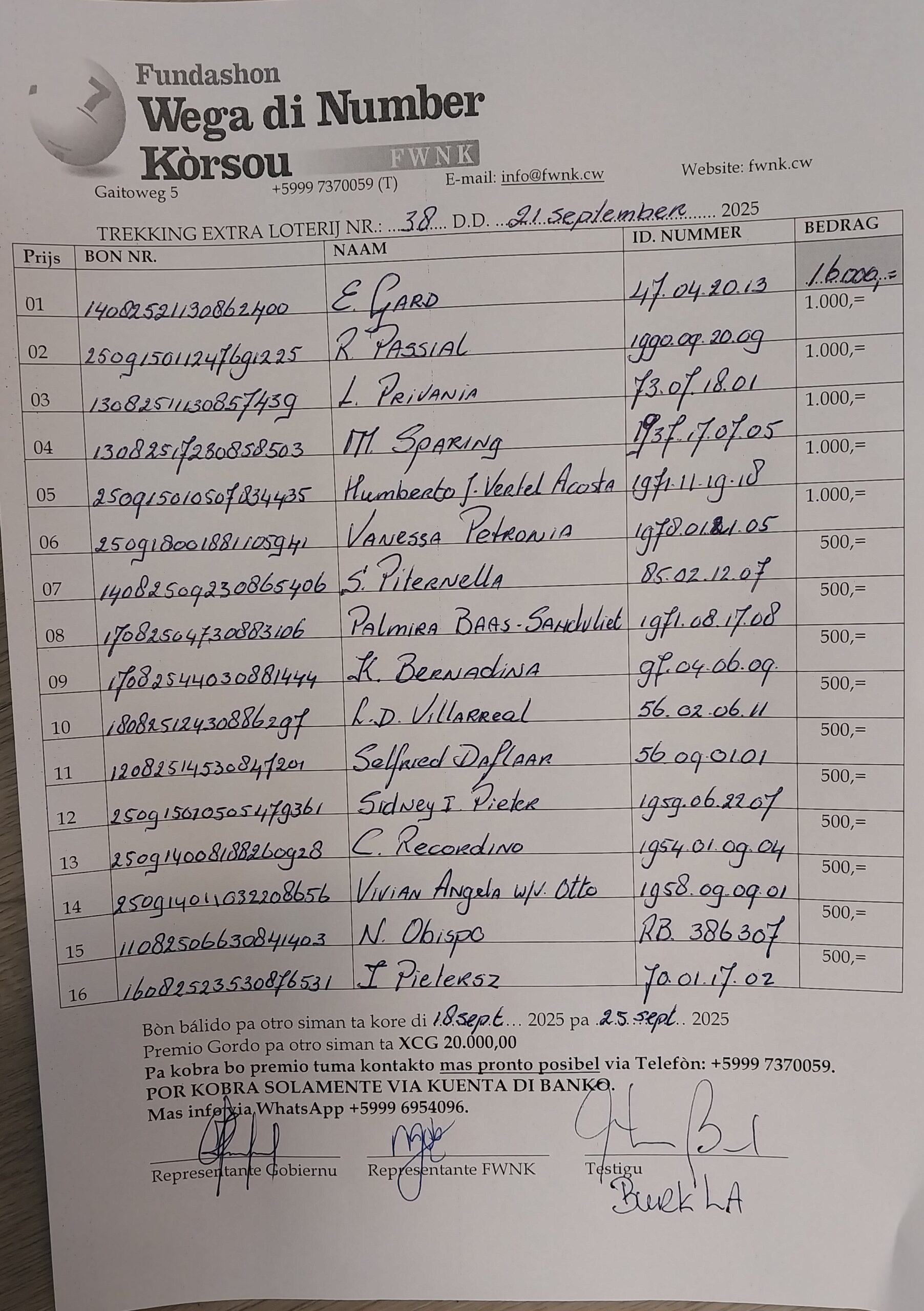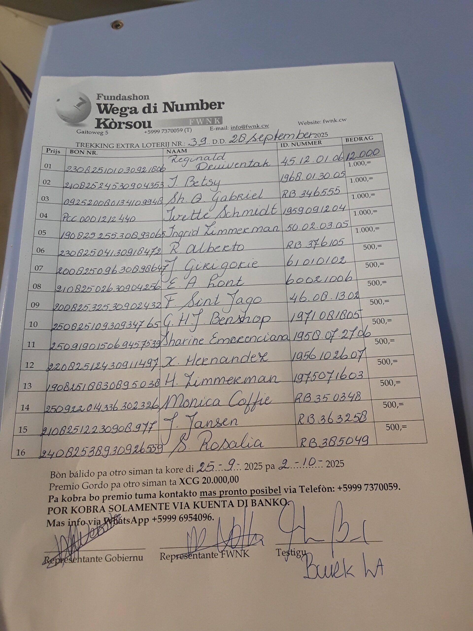 FWNK na telefòn: +5999 7370059 òf whatsapp: +5999 6954096.
