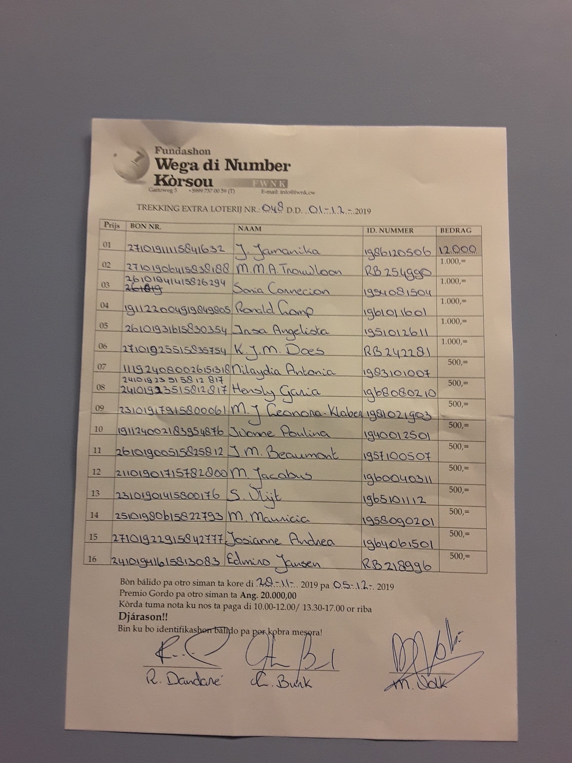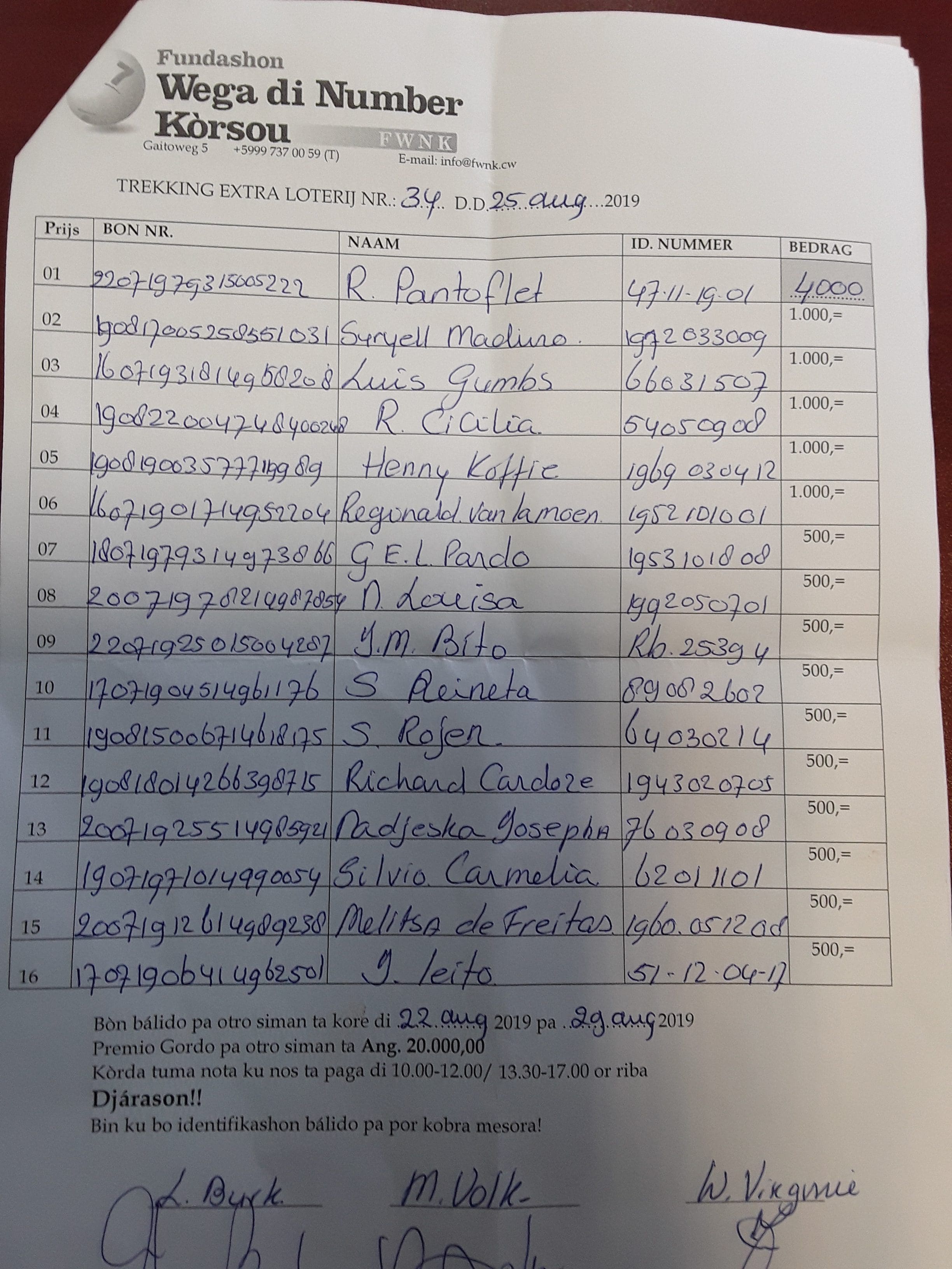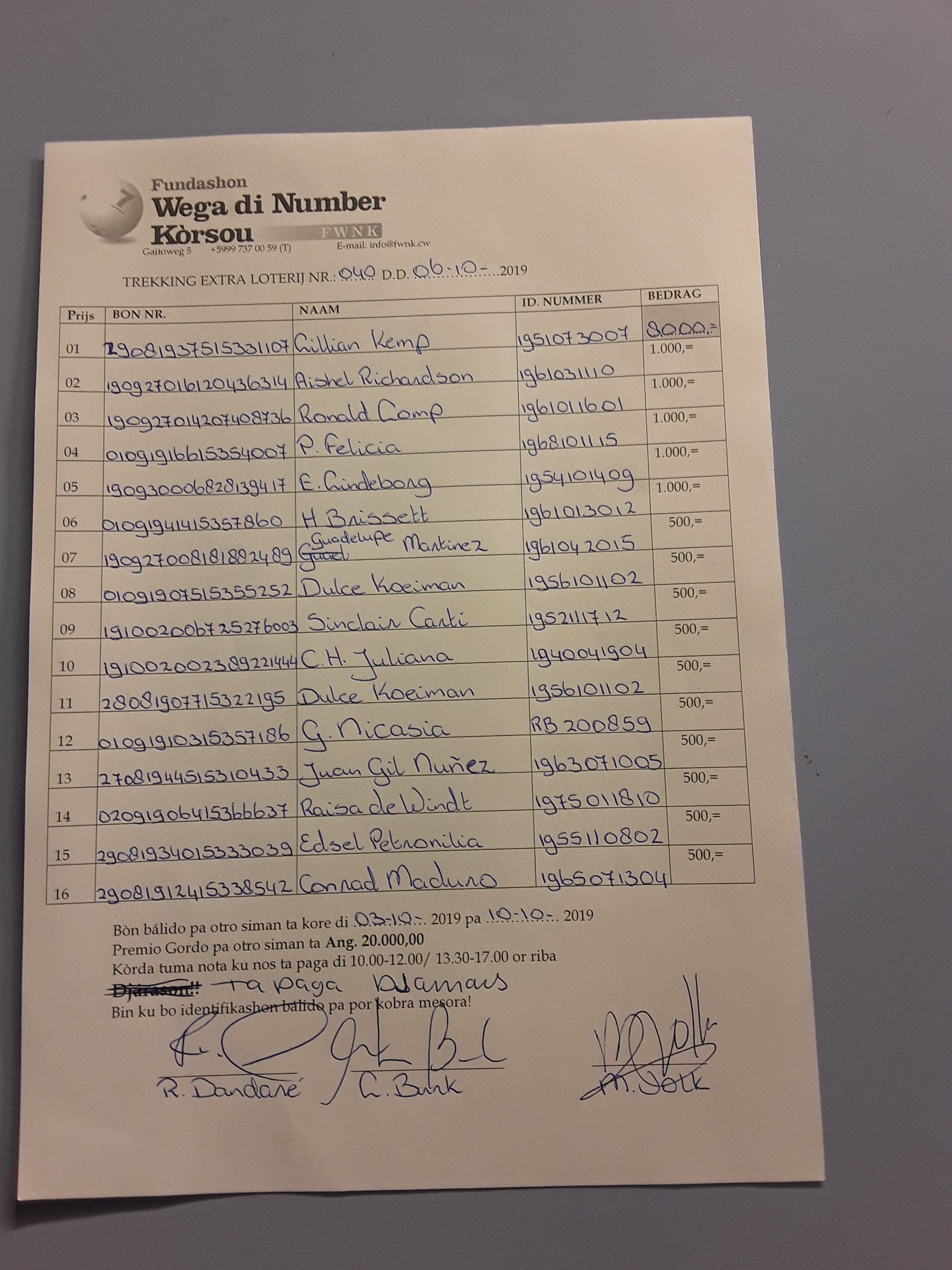 Pa por kobra bo premio mas fásil nos ta pidi e ganadó pa kontrolá e informashon
