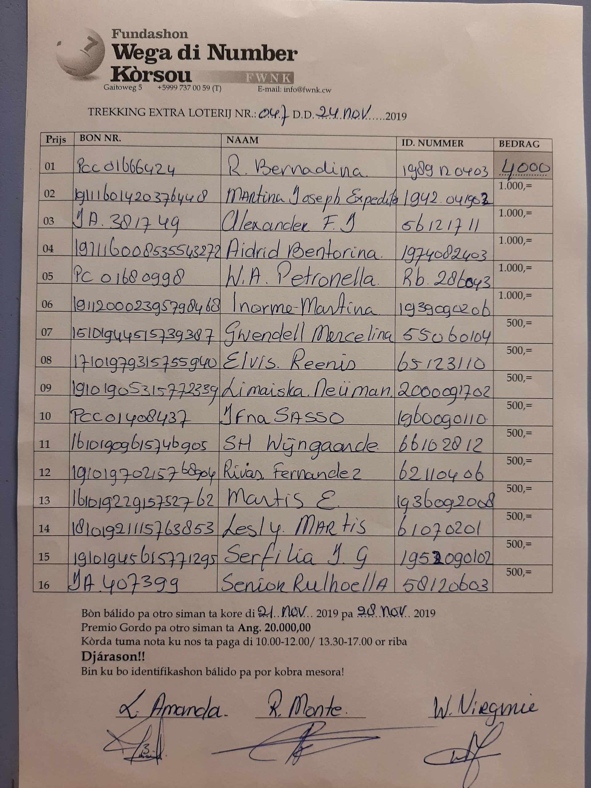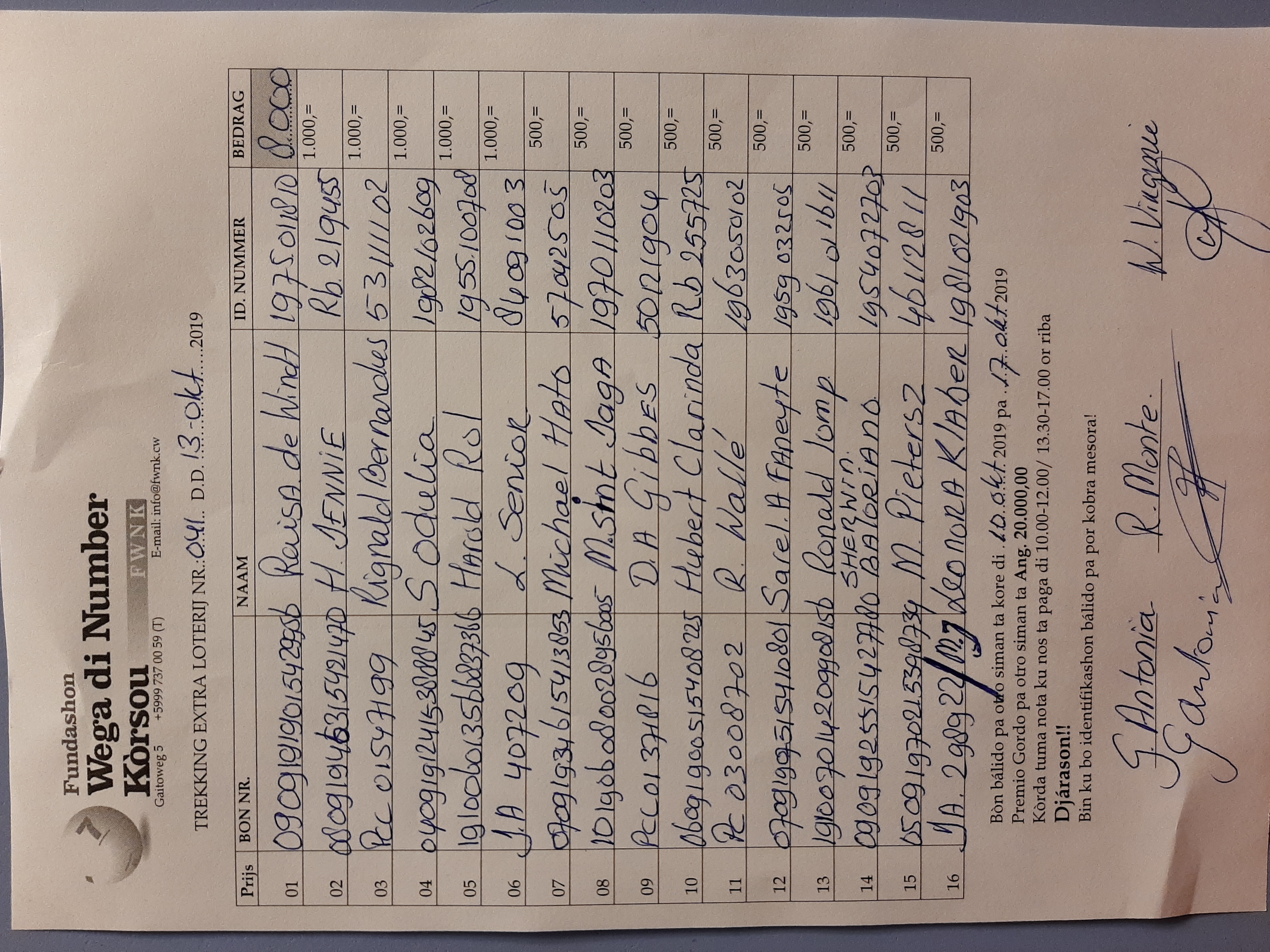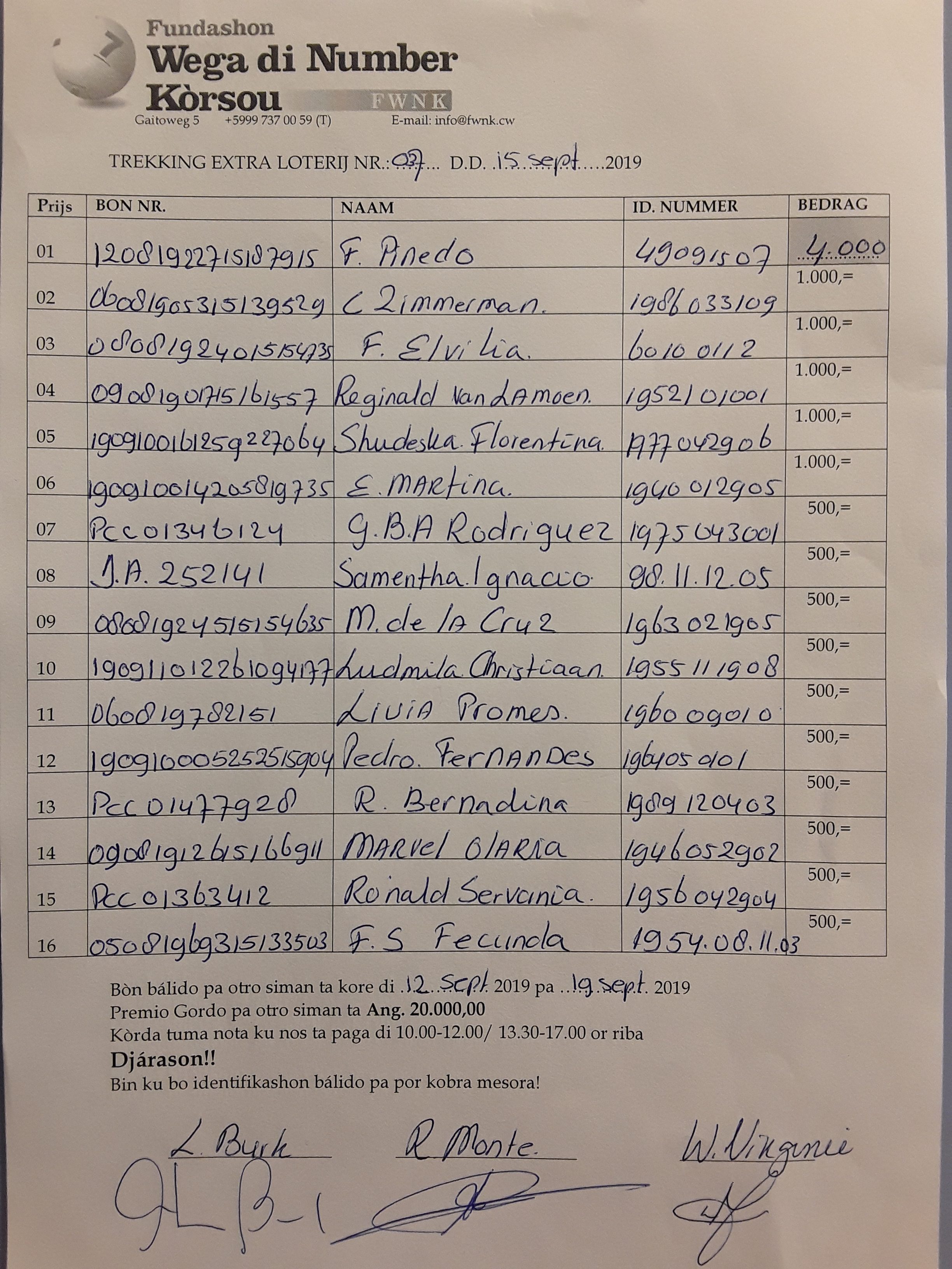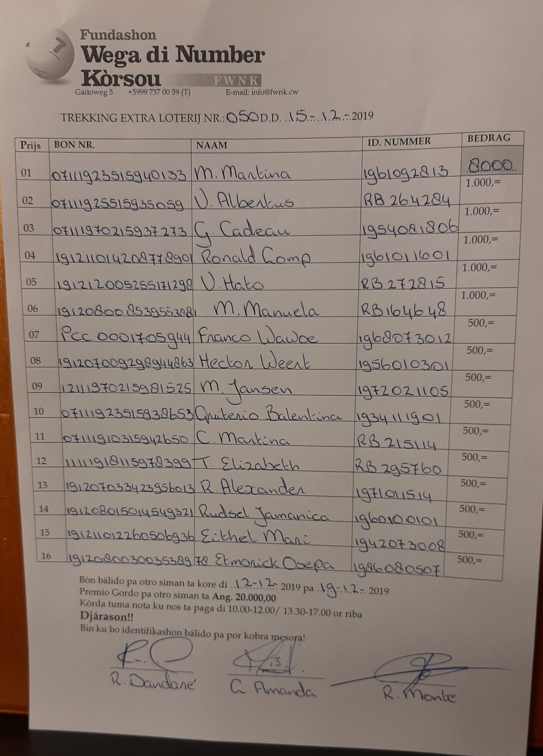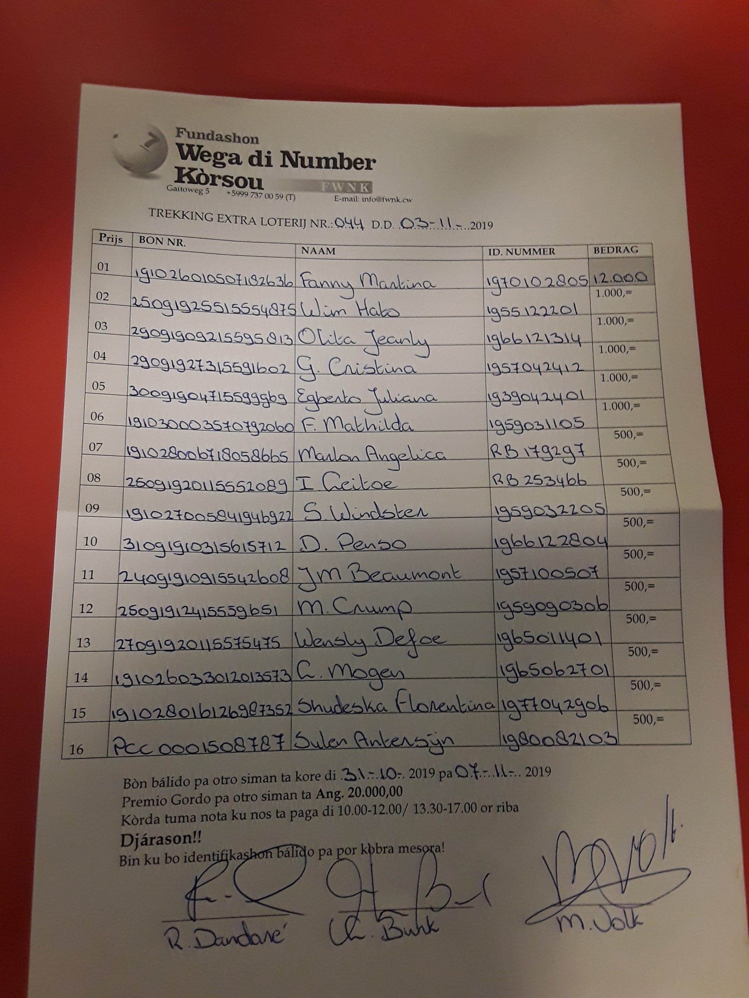 FWNK na telefòn: +5999 7370059 òf whatsapp: +5999 6954096.