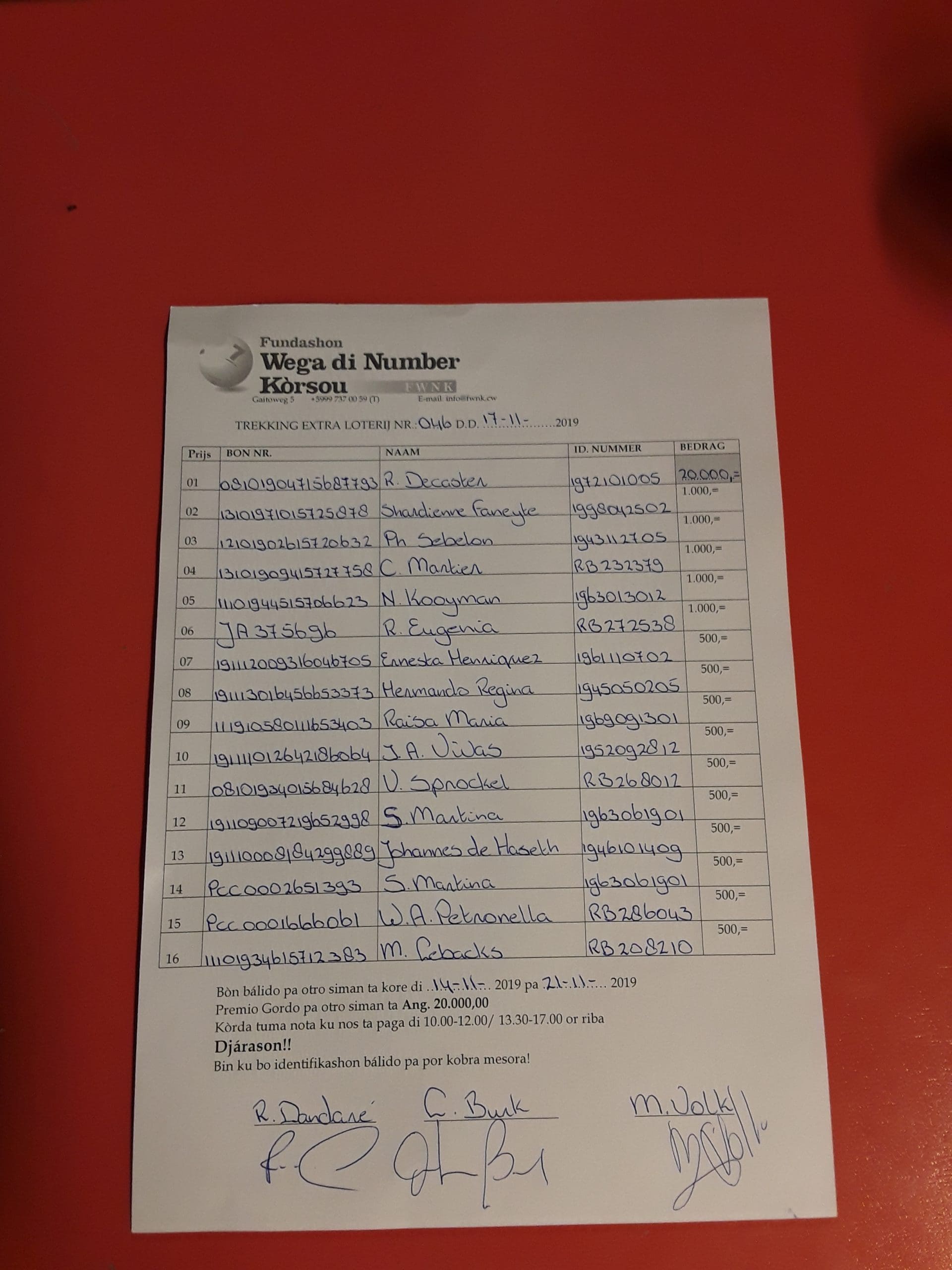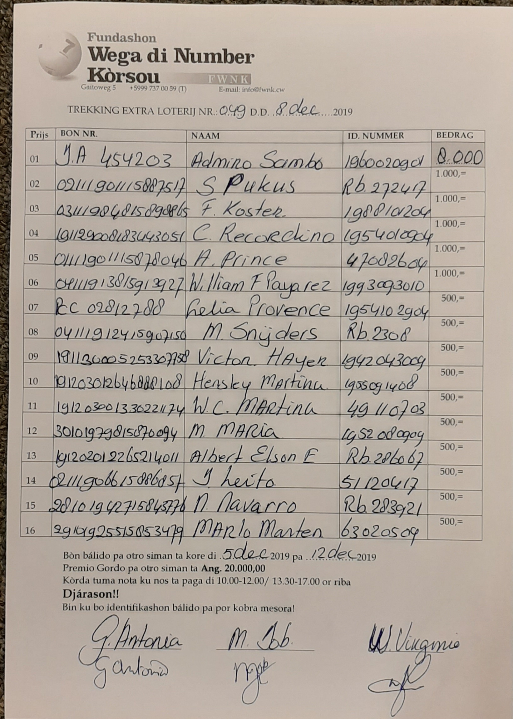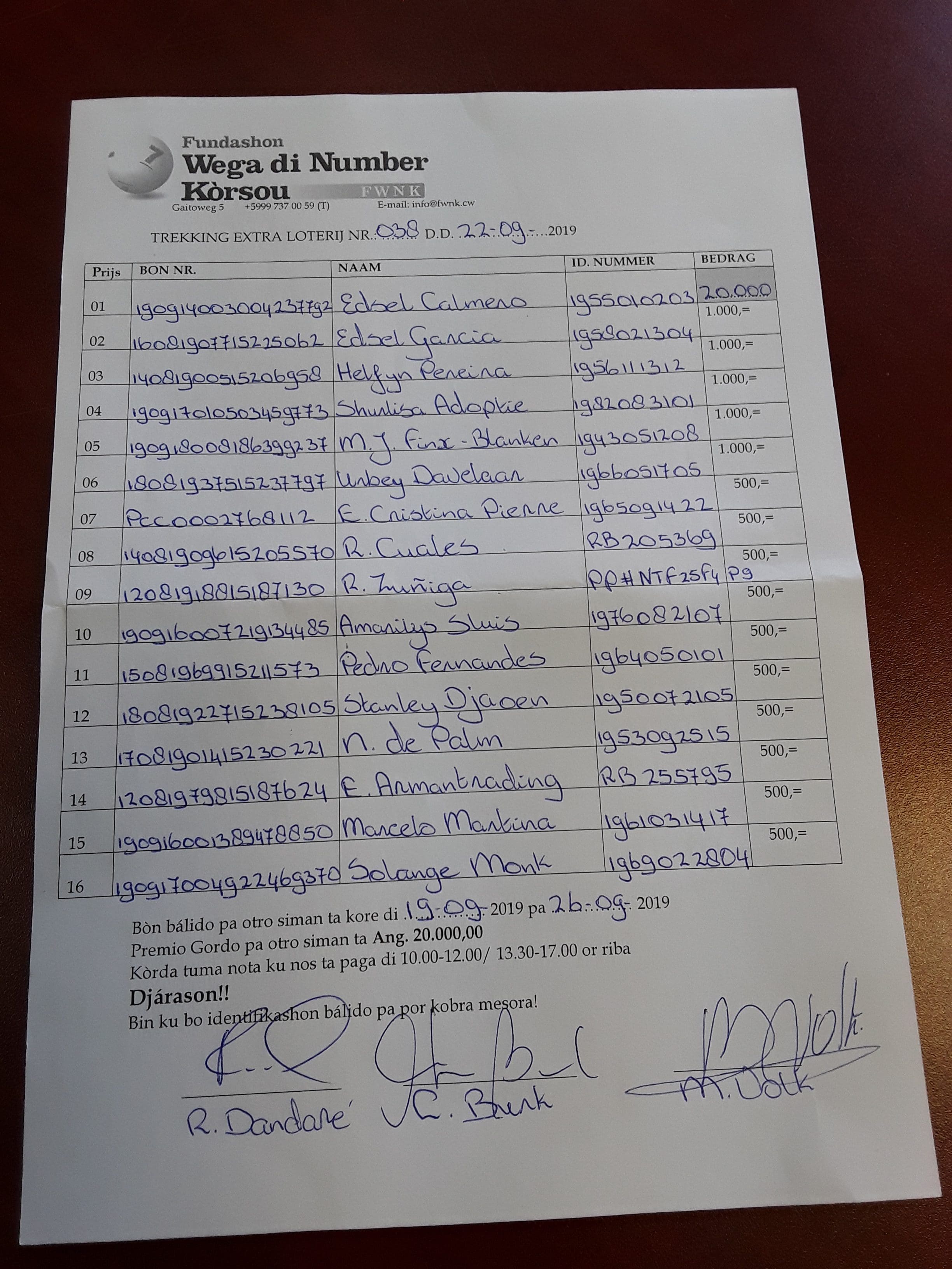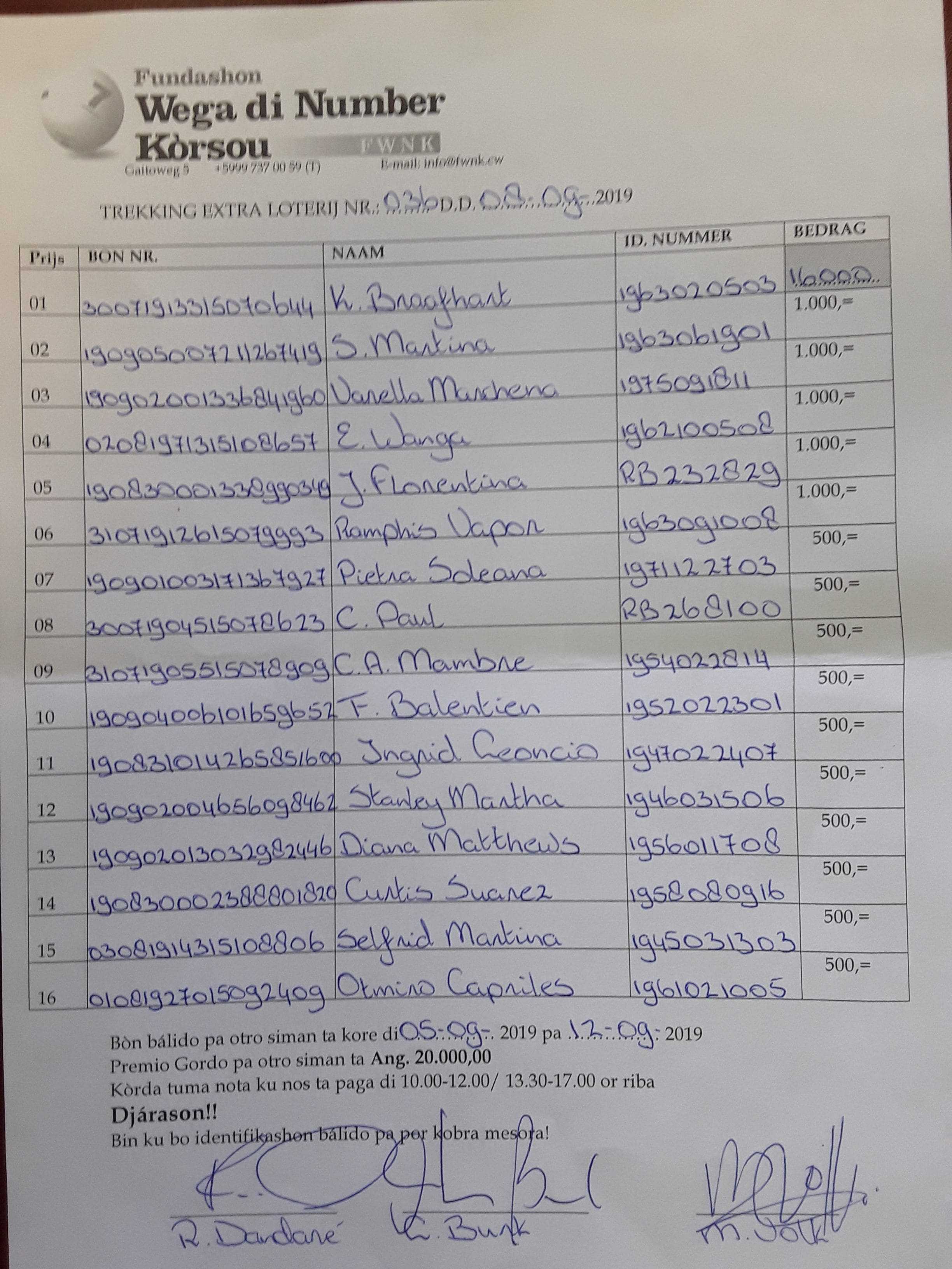 FWNK na telefòn: +5999 7370059 òf whatsapp: +5999 6954096.