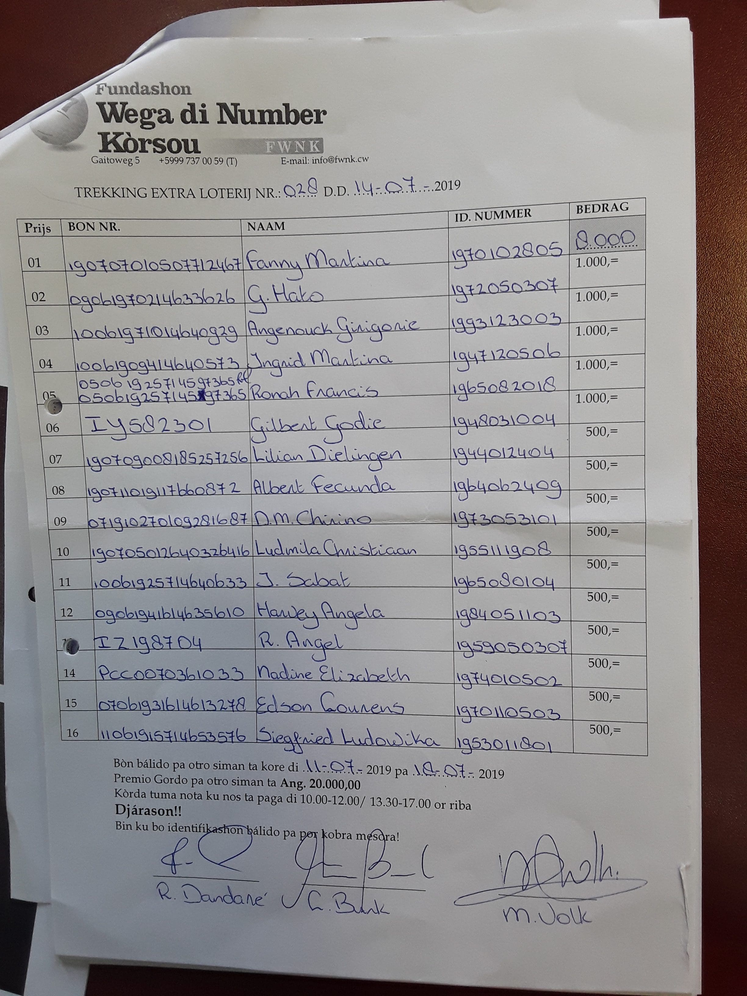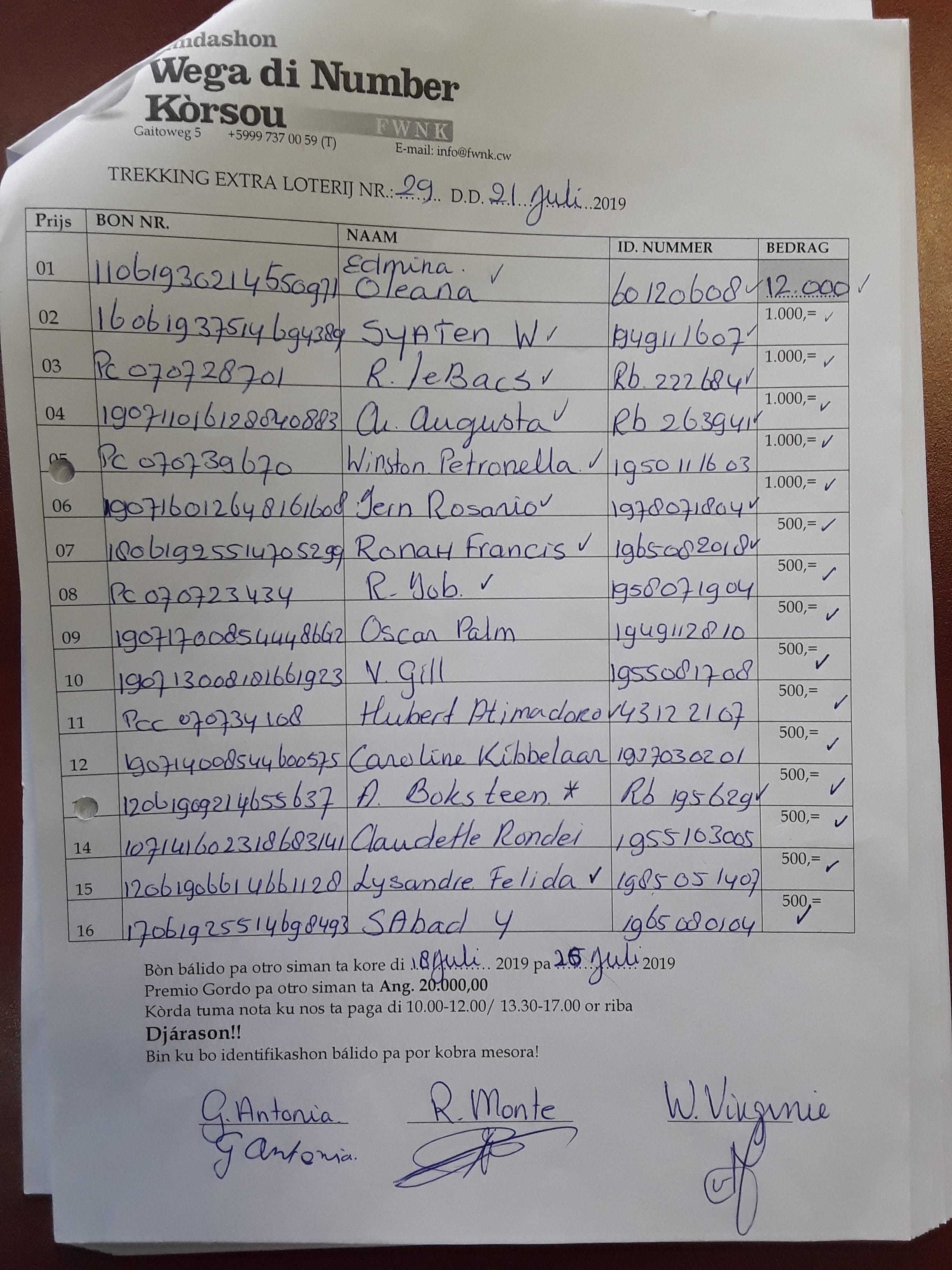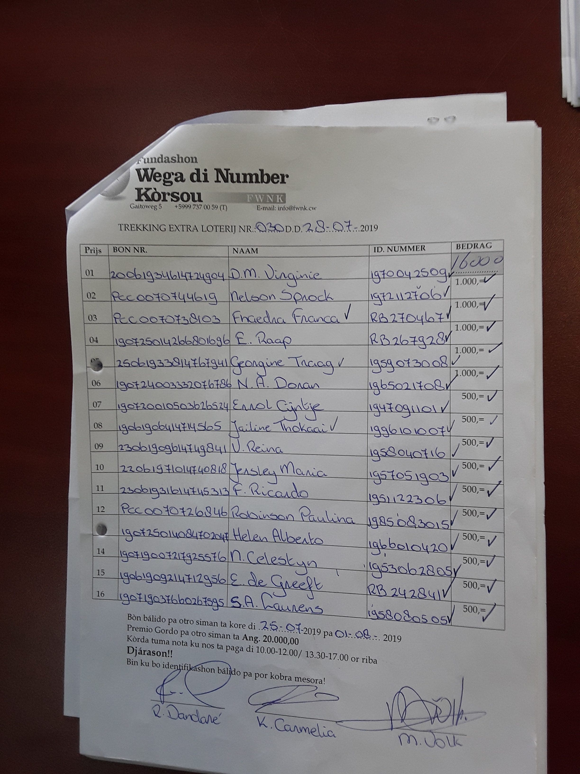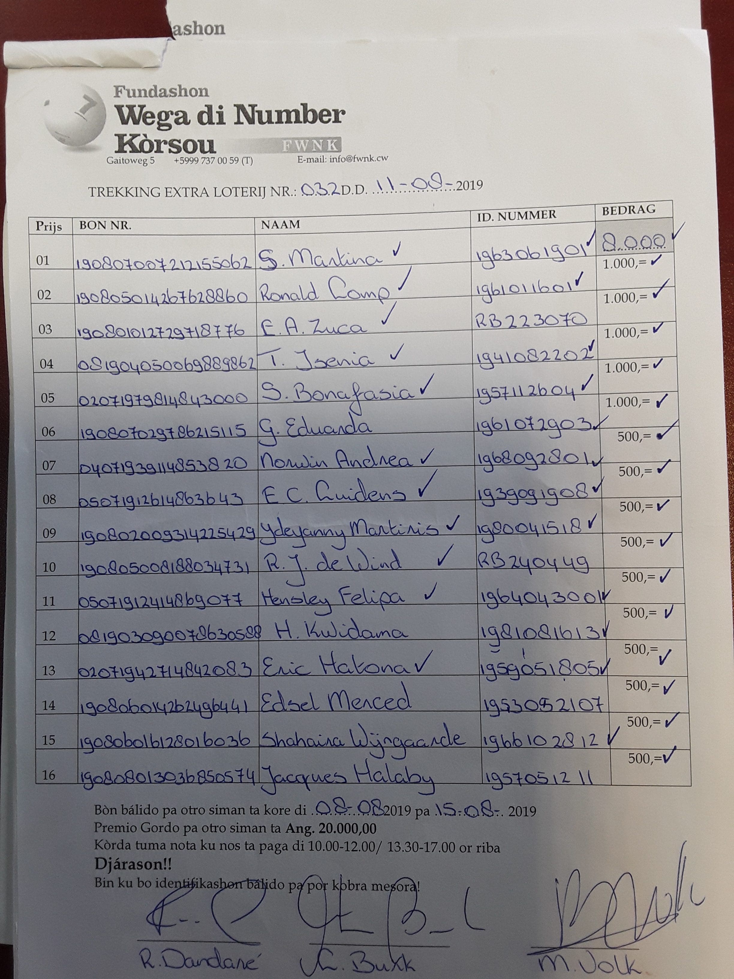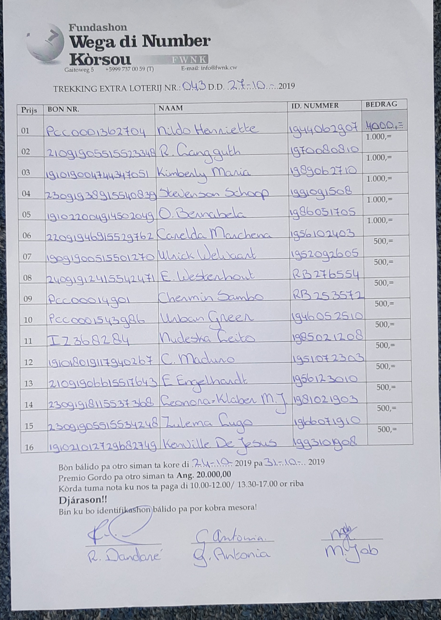 FWNK na telefòn: +5999 7370059 òf whatsapp: +5999 6954096.