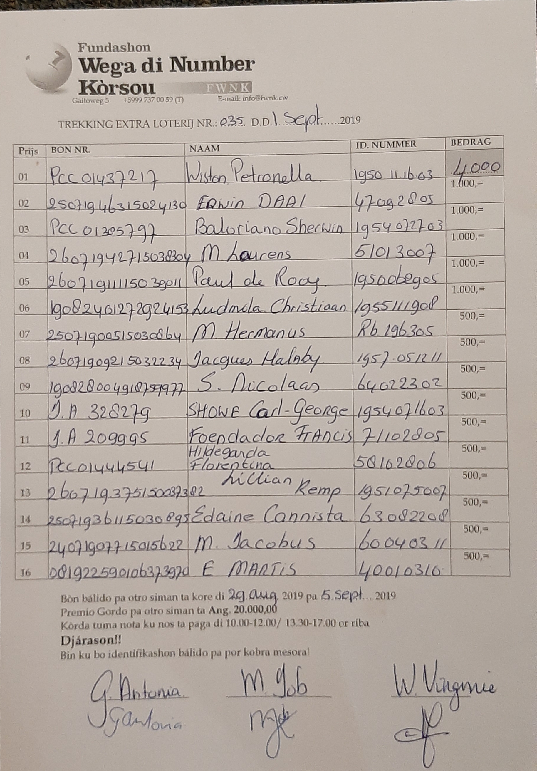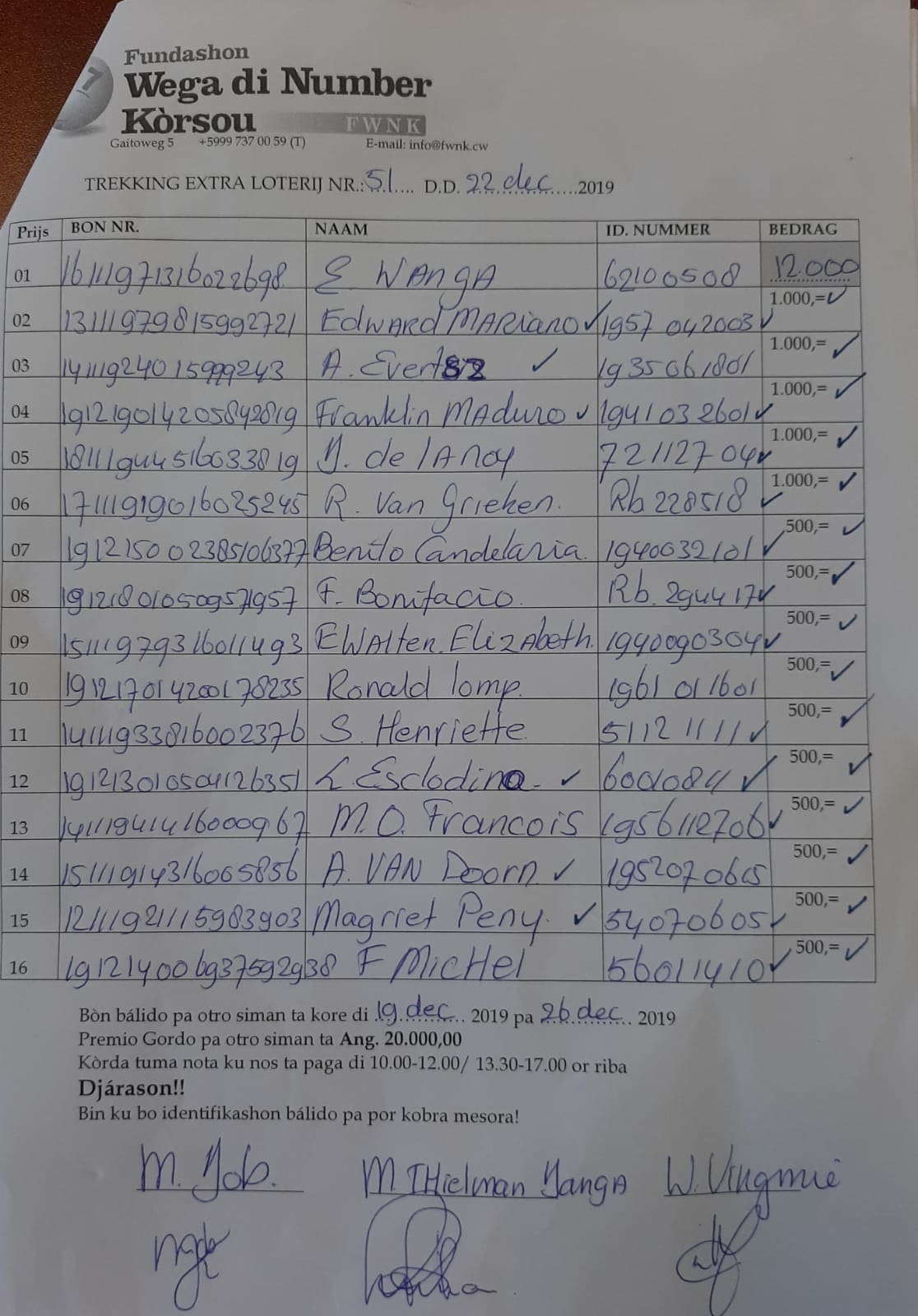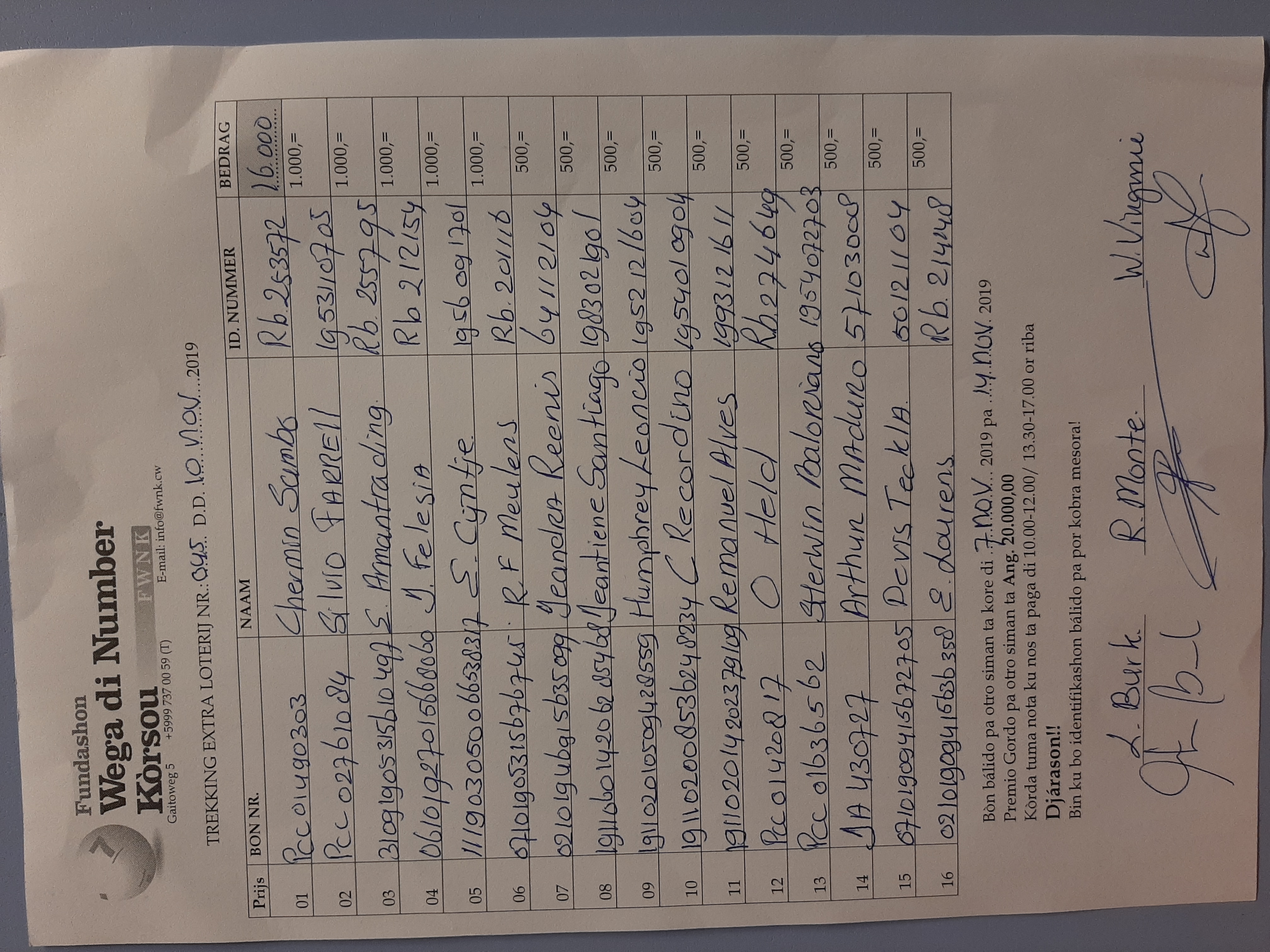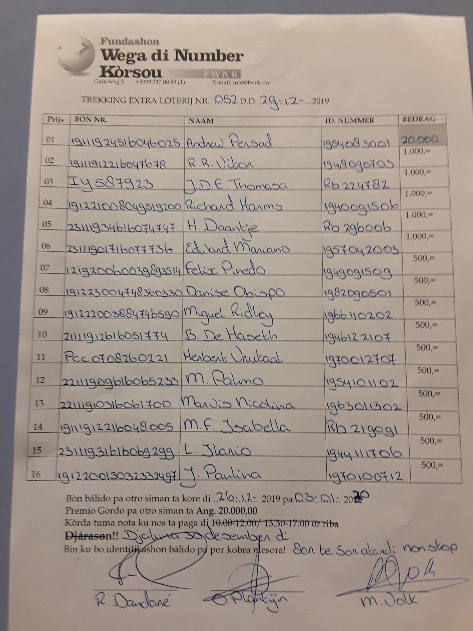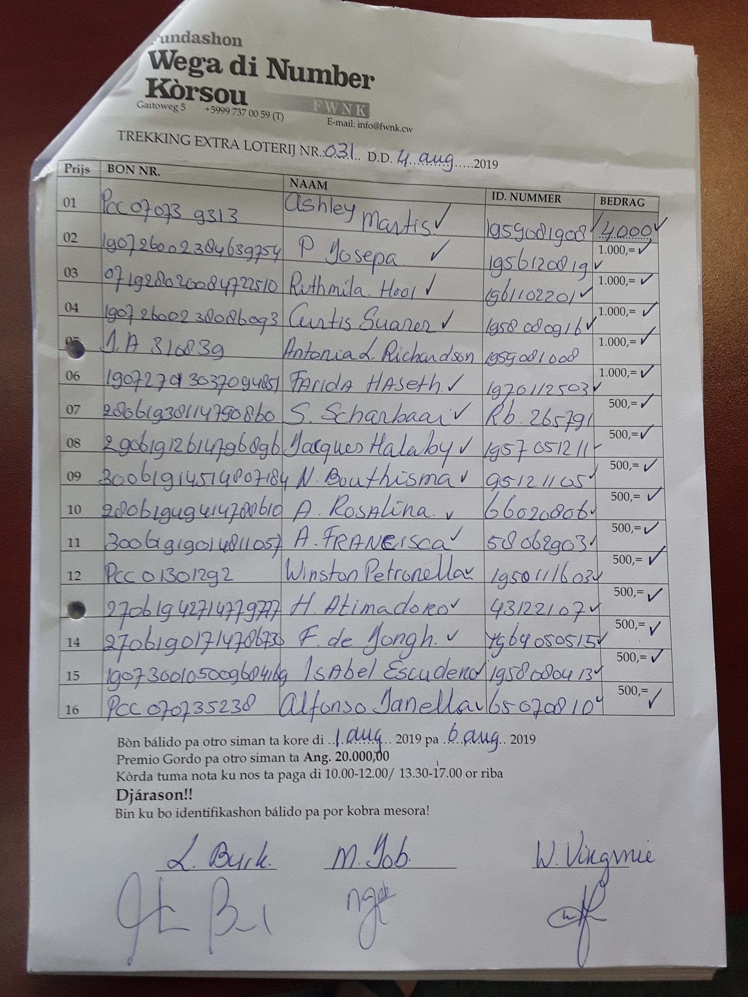 FWNK na telefòn: +5999 7370059 òf whatsapp: +5999 6954096.