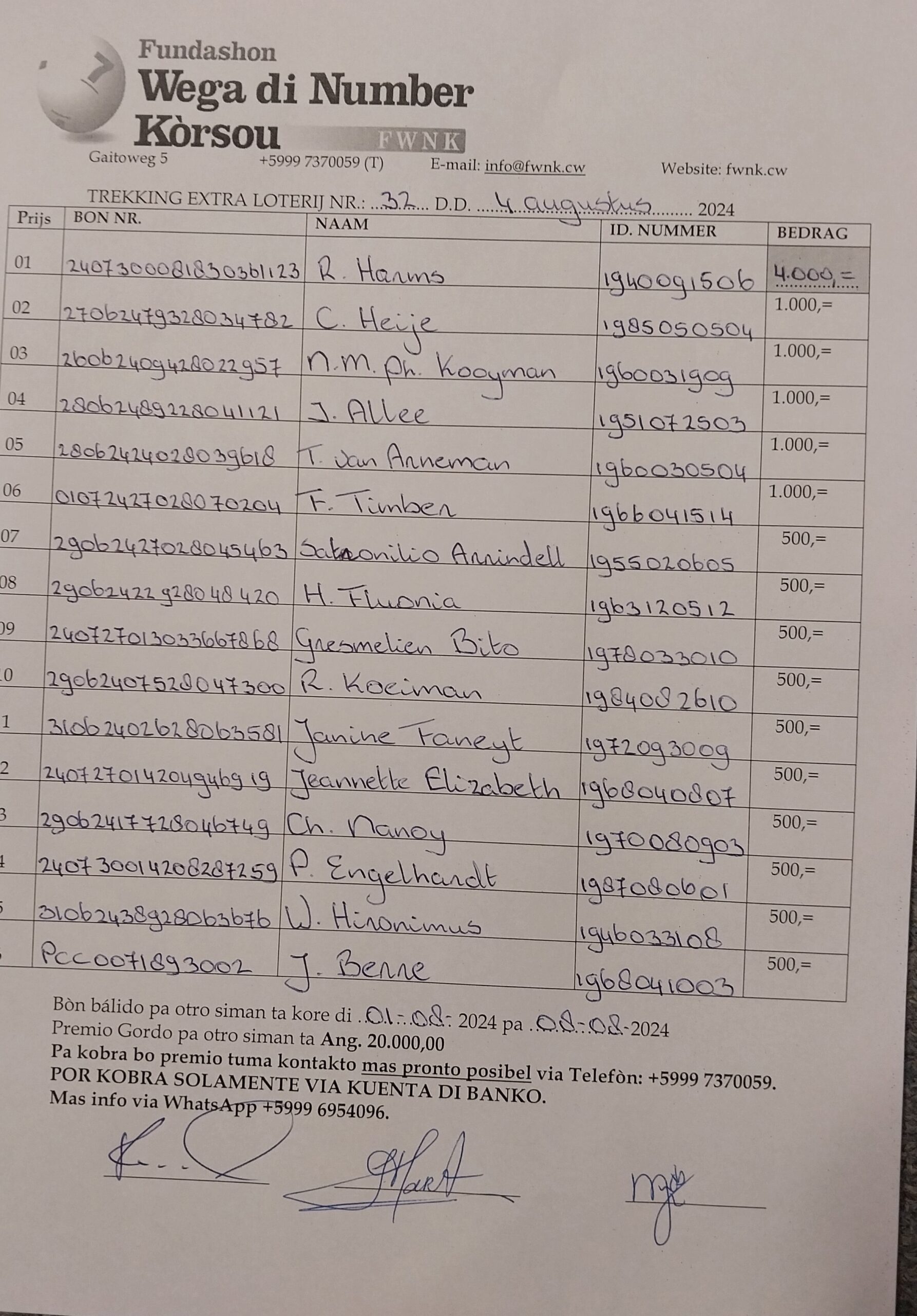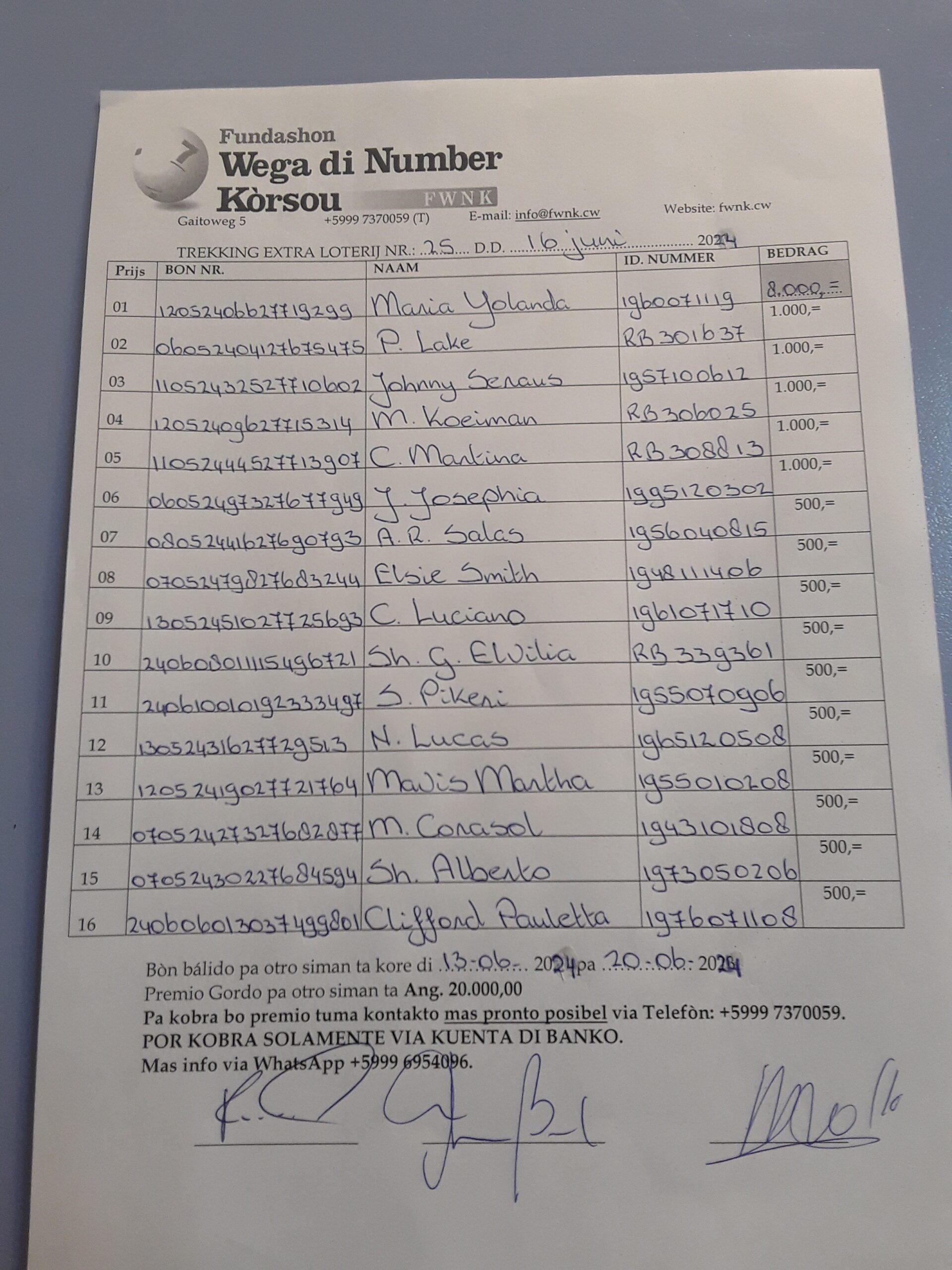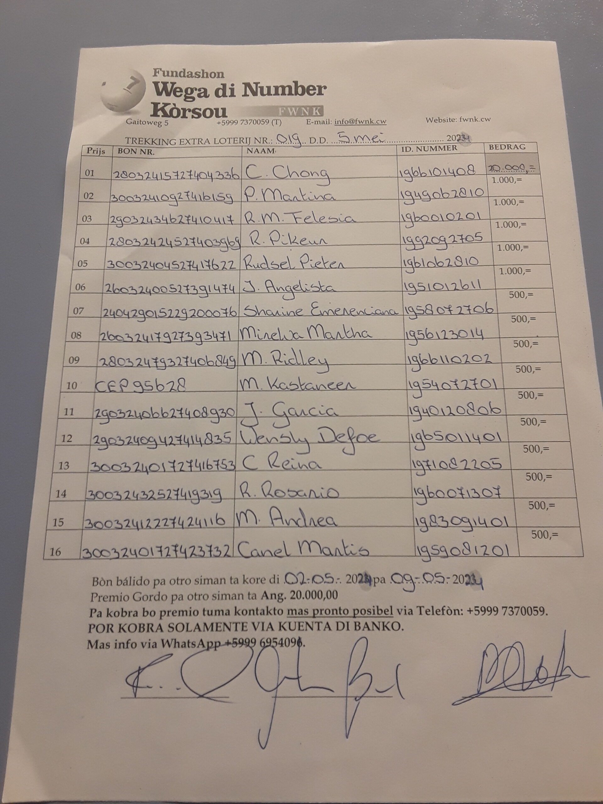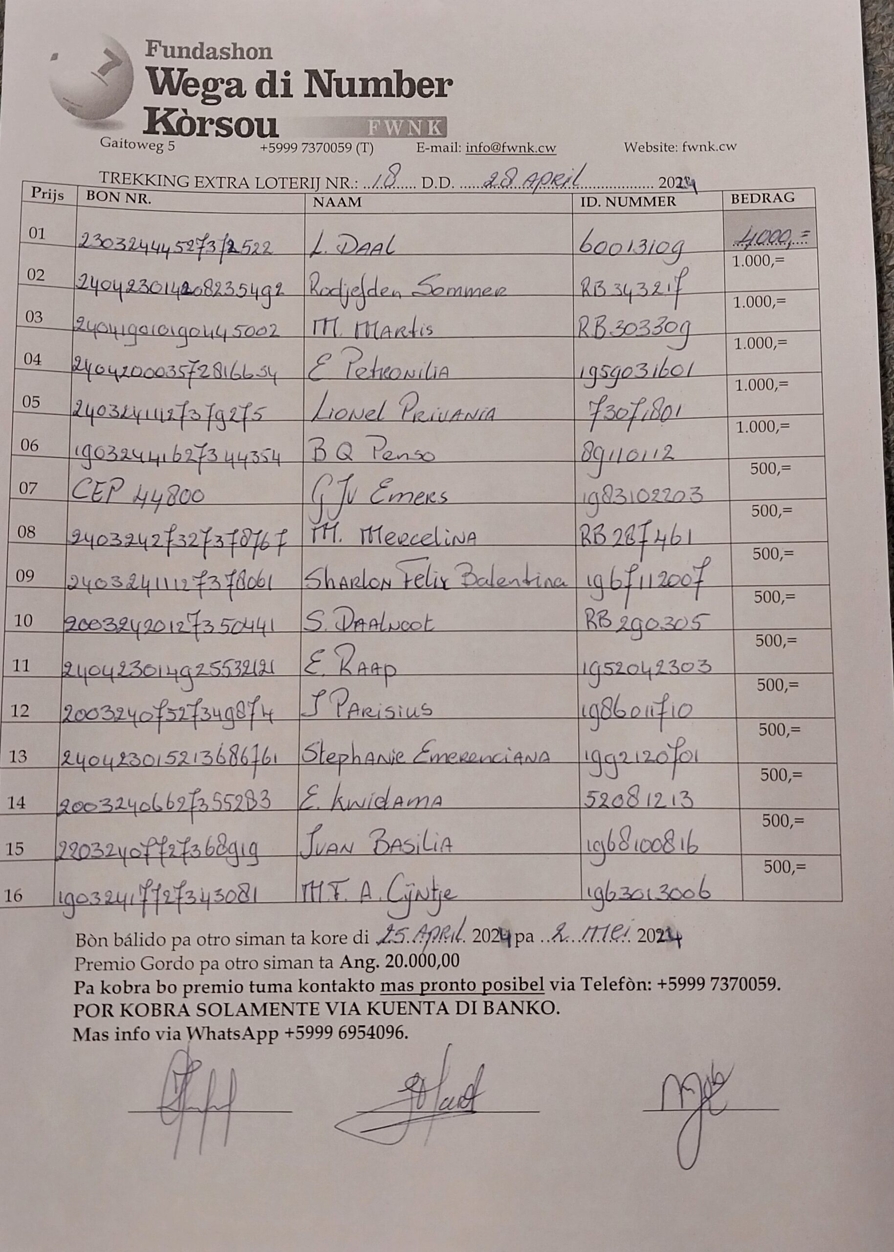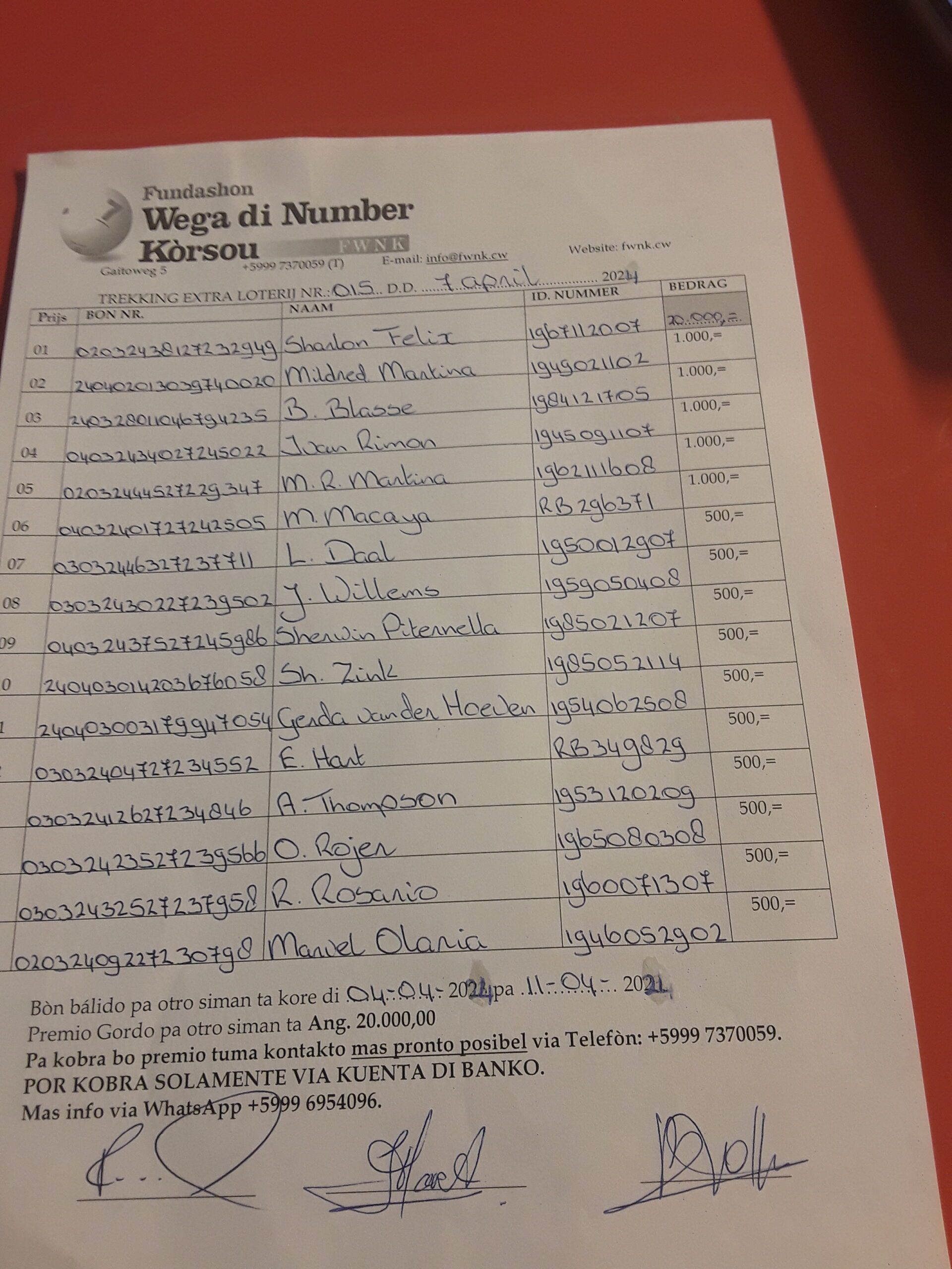 FWNK na telefòn: +5999 7370059 òf whatsapp: +5999 6954096.