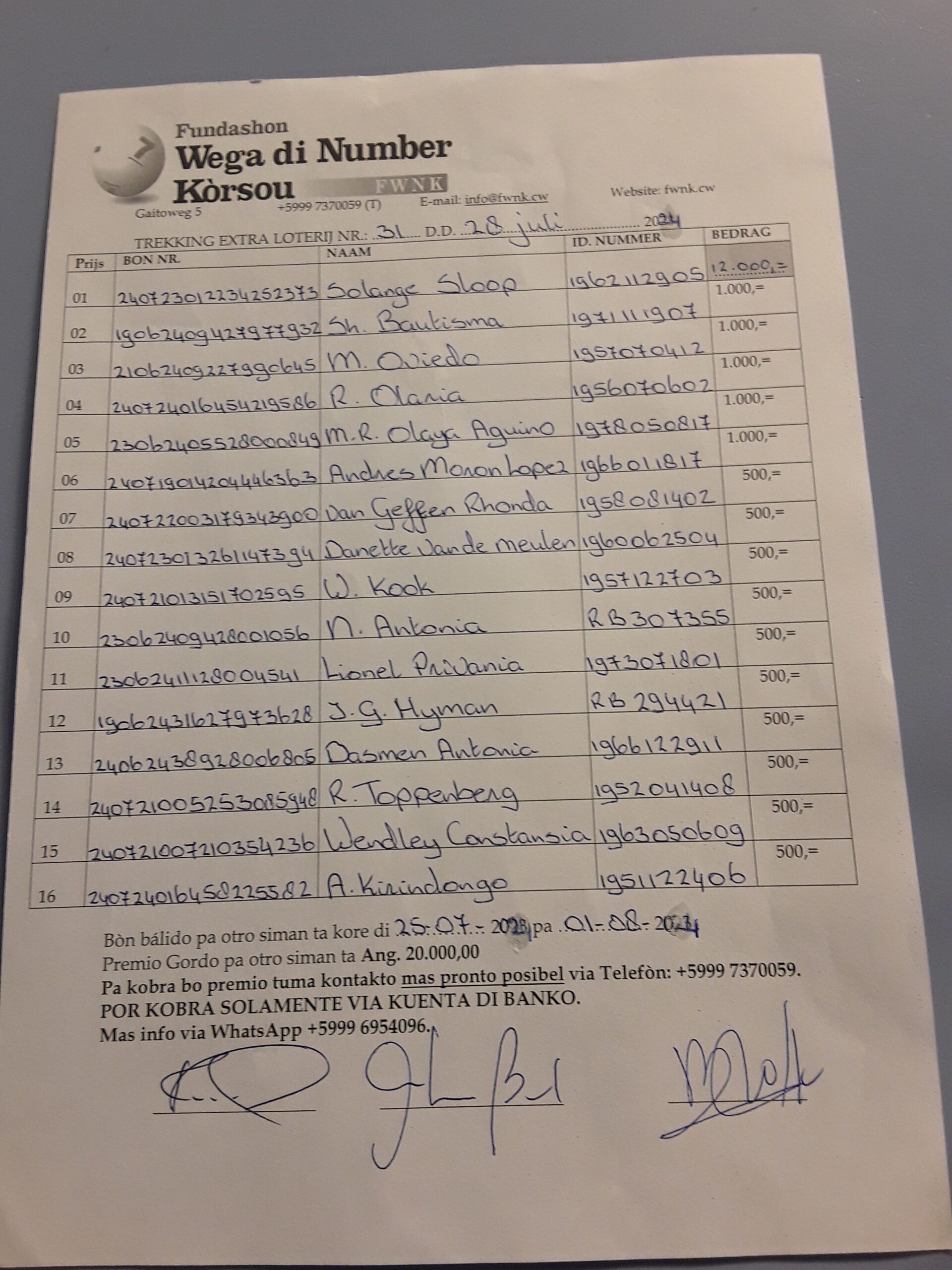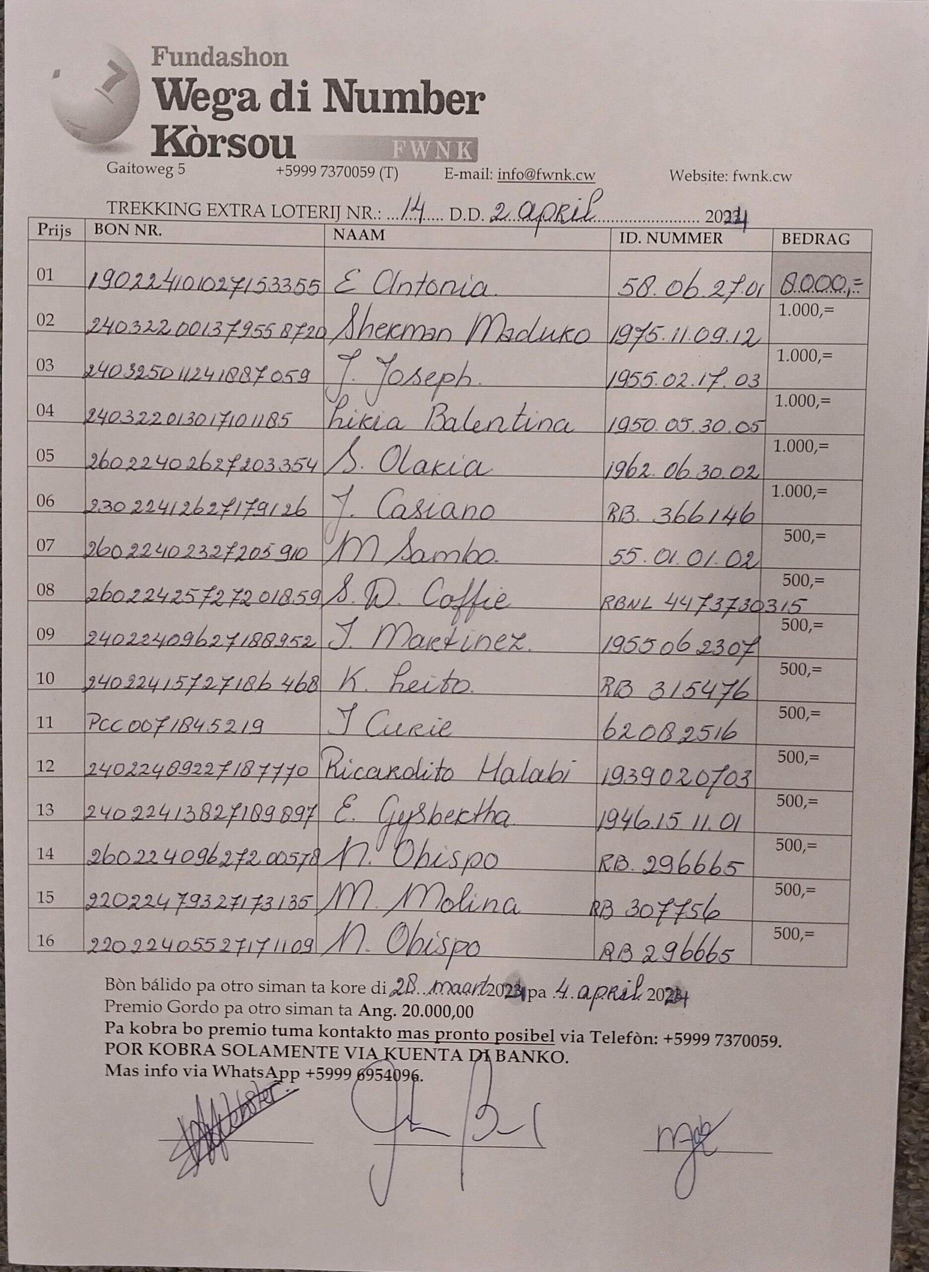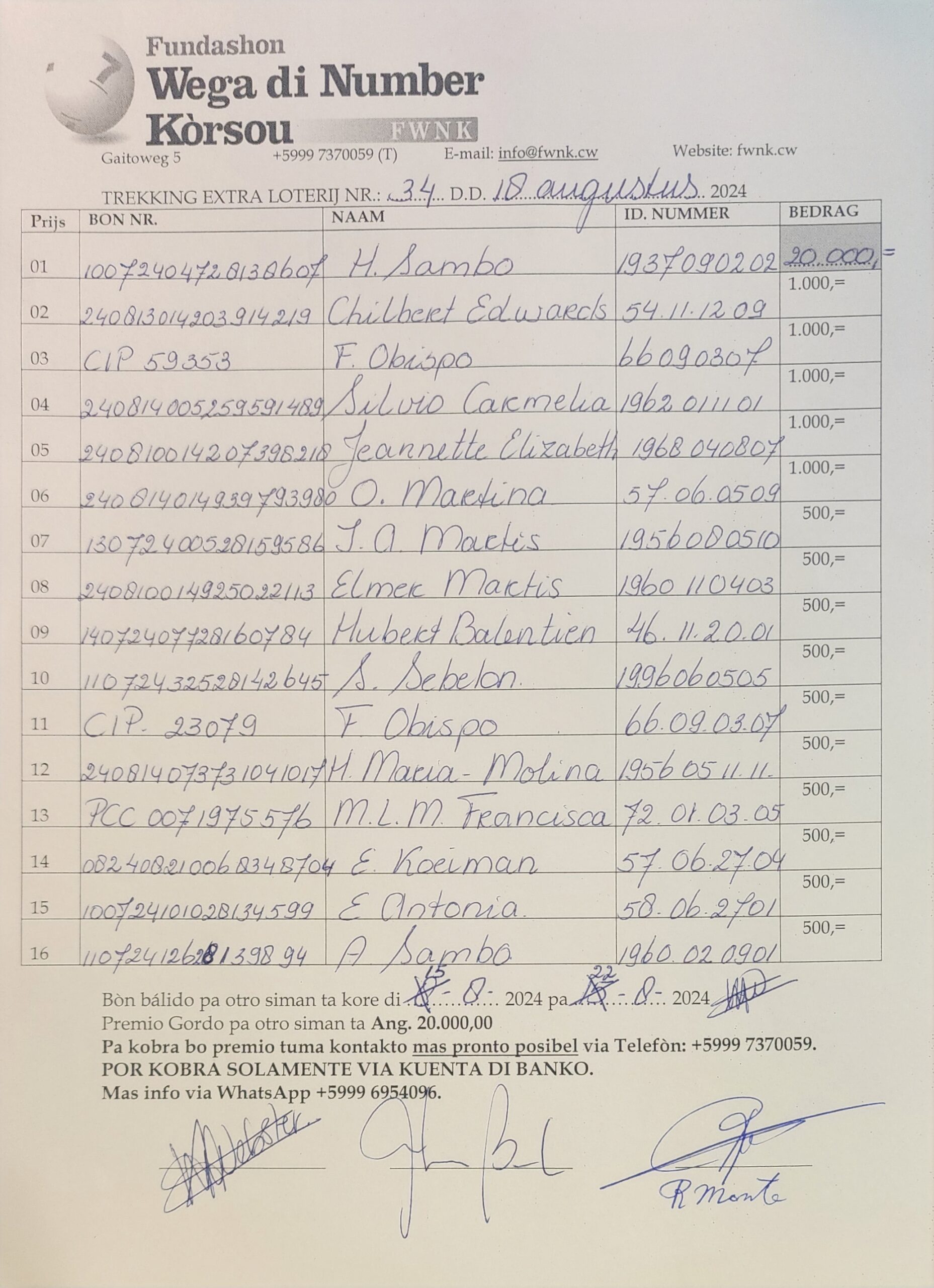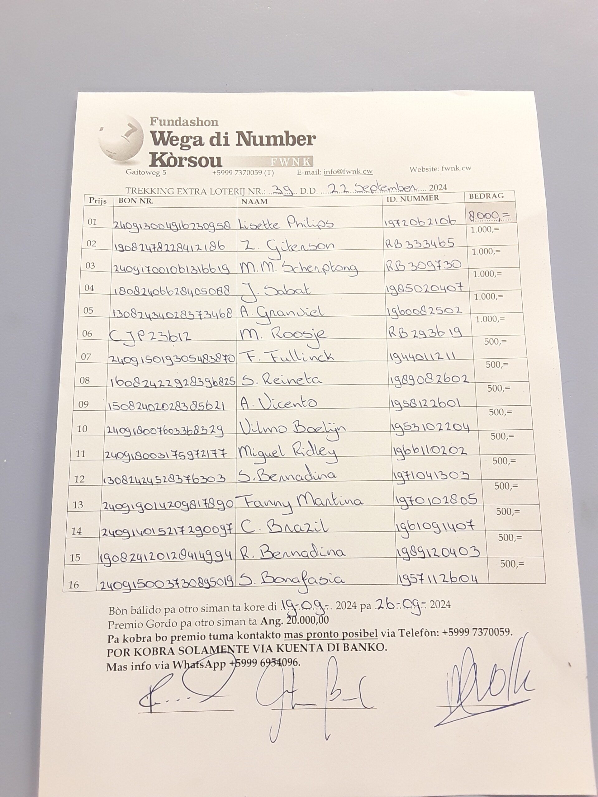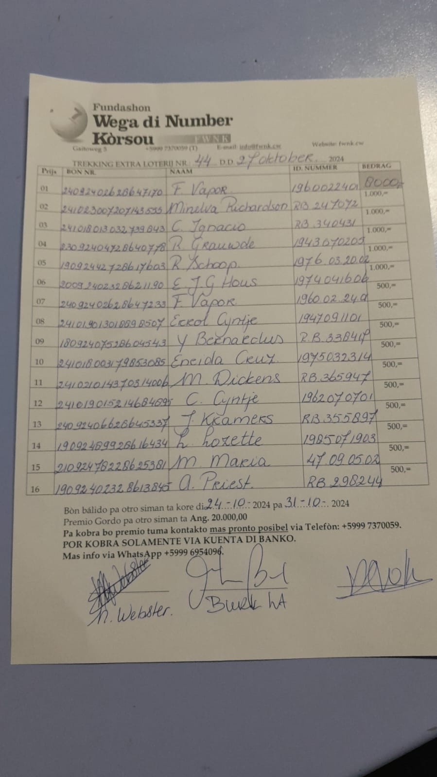 FWNK na telefòn: +5999 7370059 òf whatsapp: +5999 6954096.