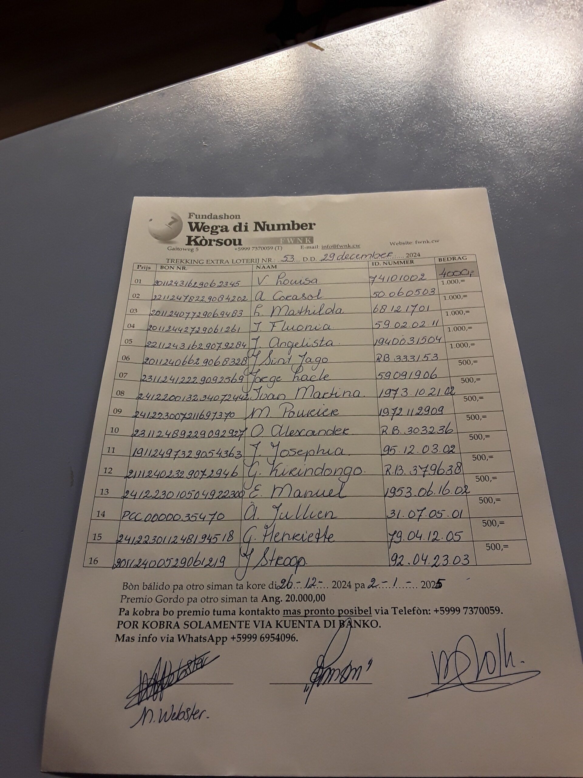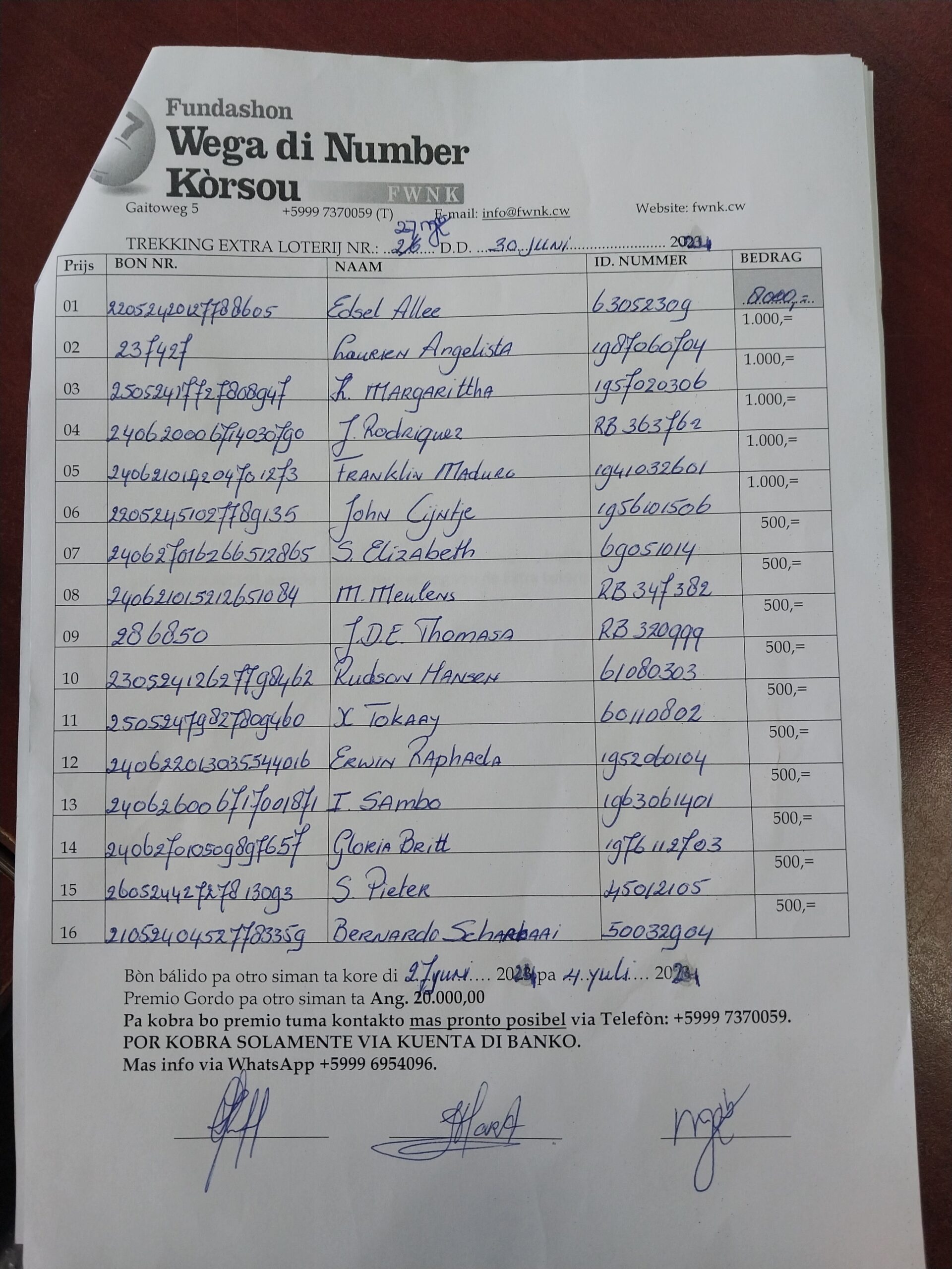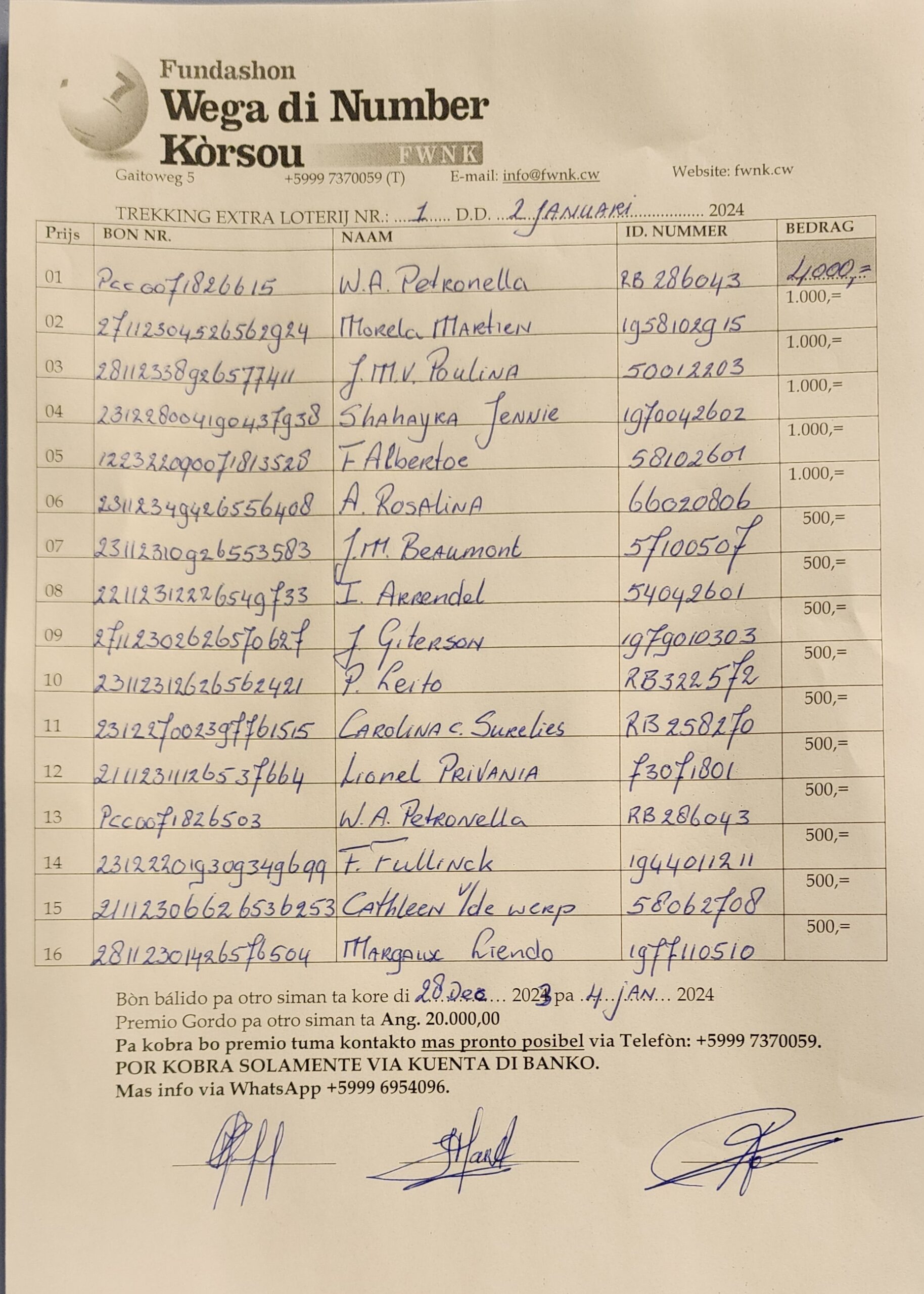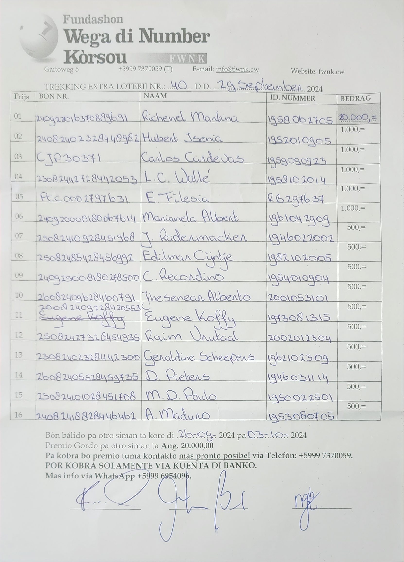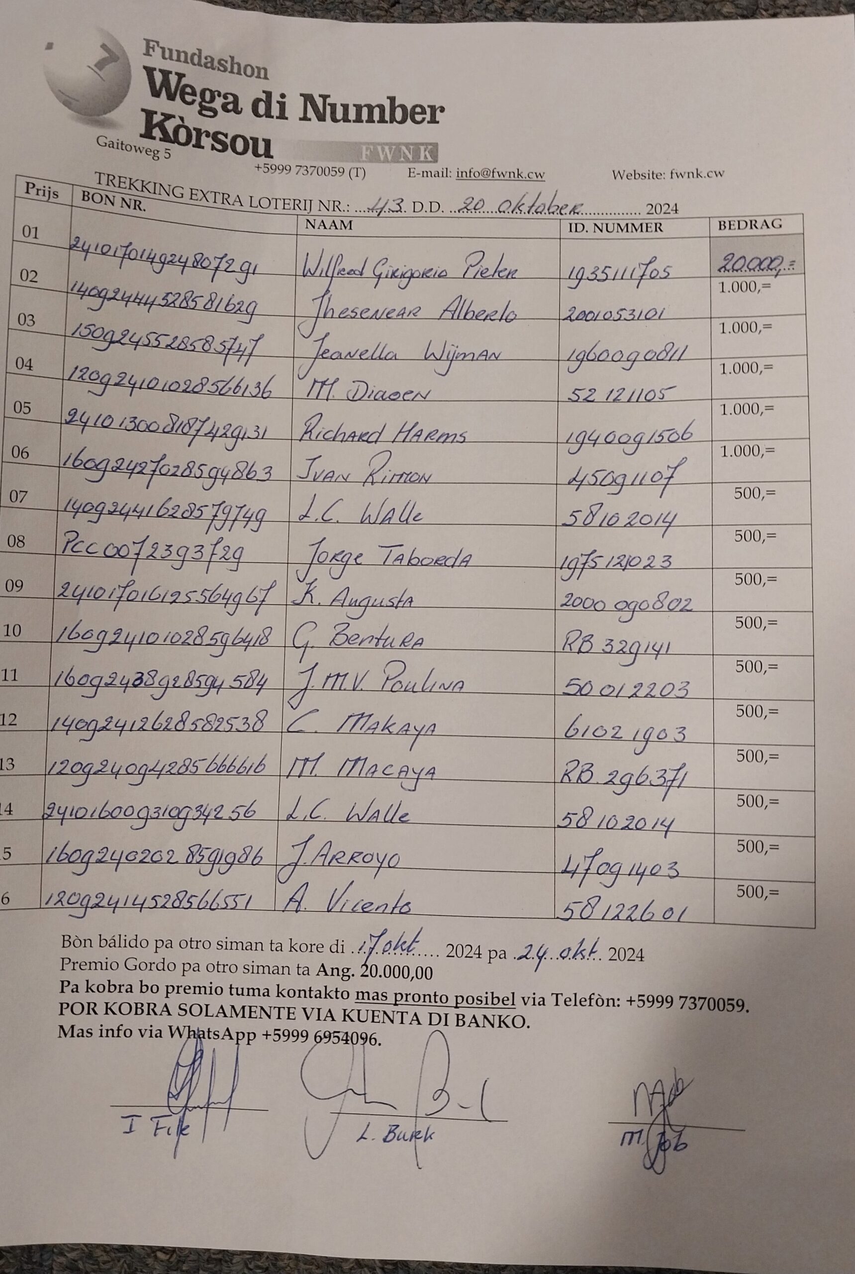 FWNK na telefòn: +5999 7370059 òf whatsapp: +5999 6954096.