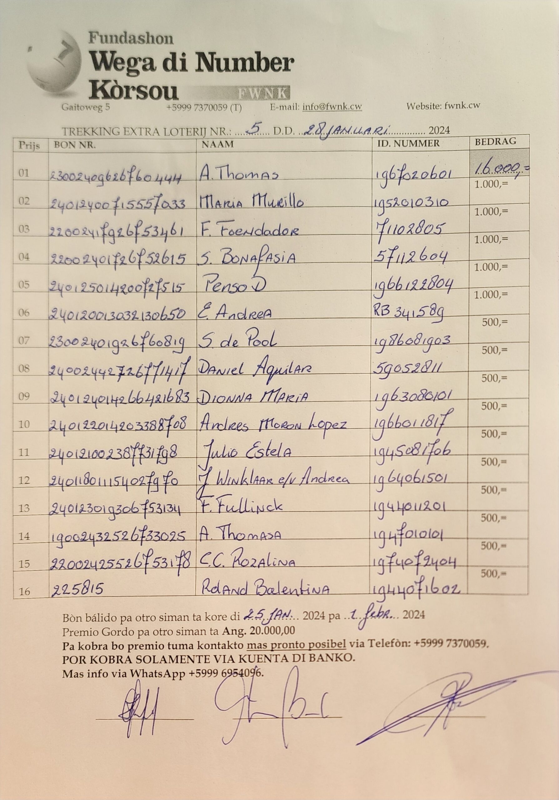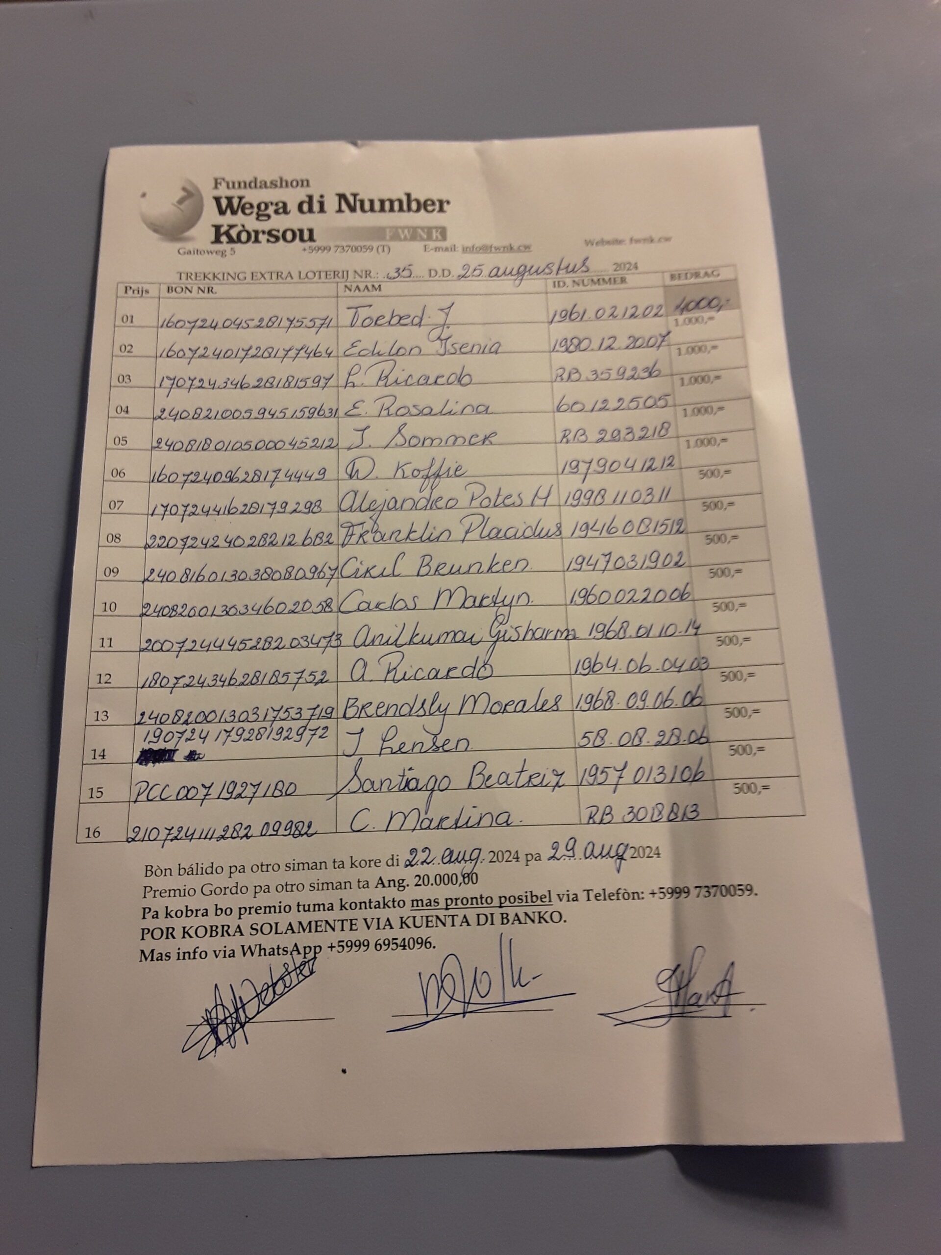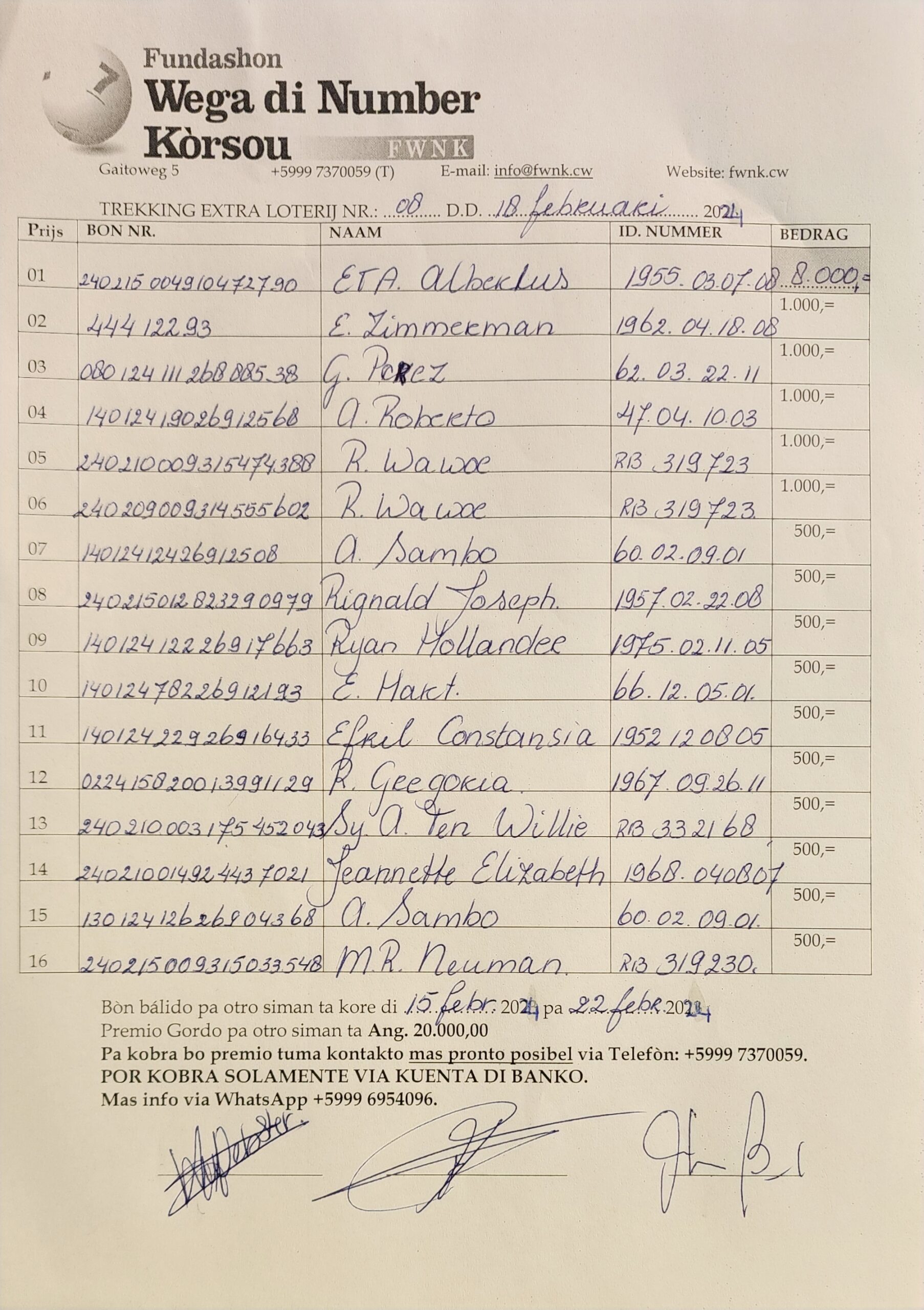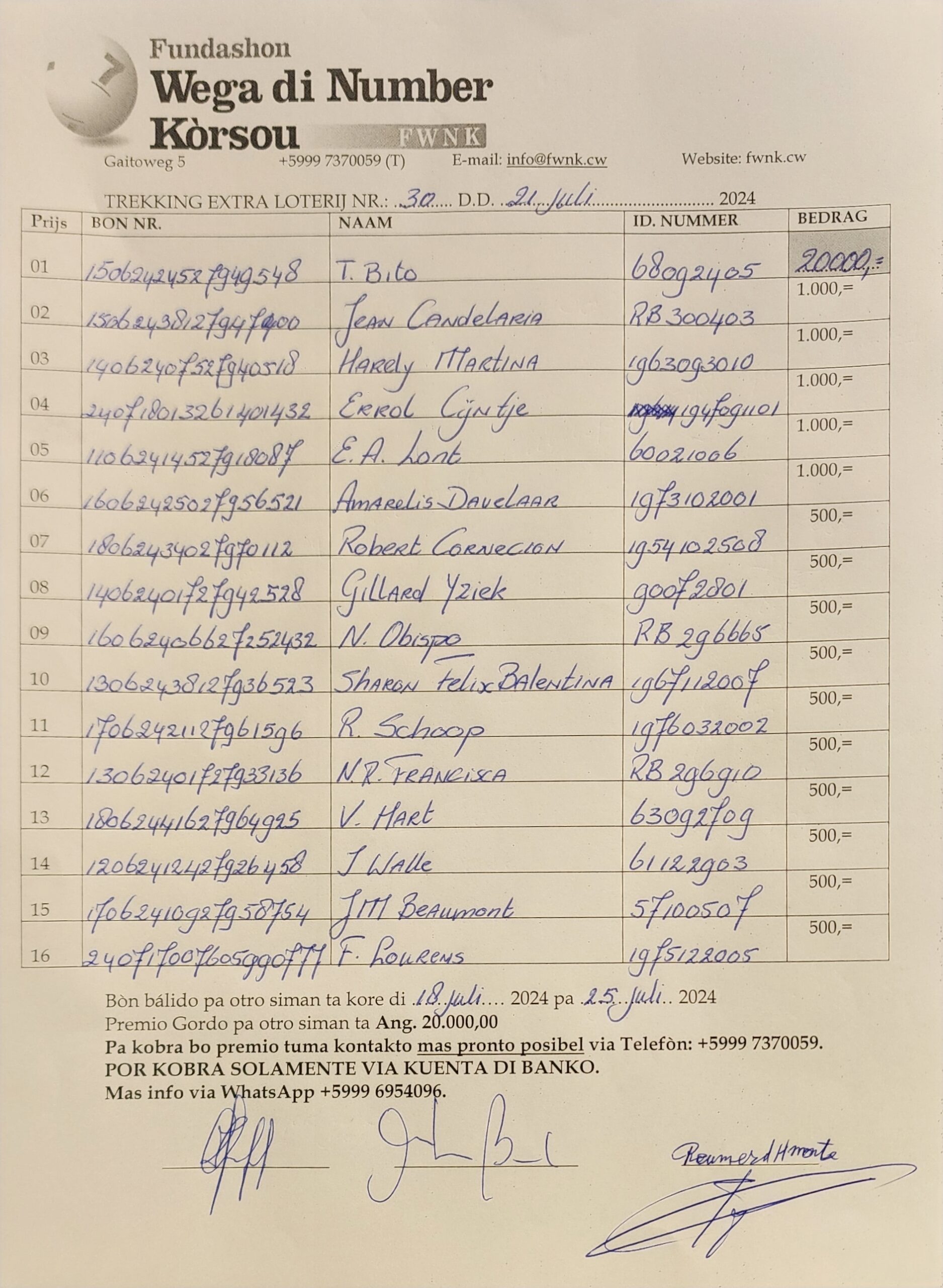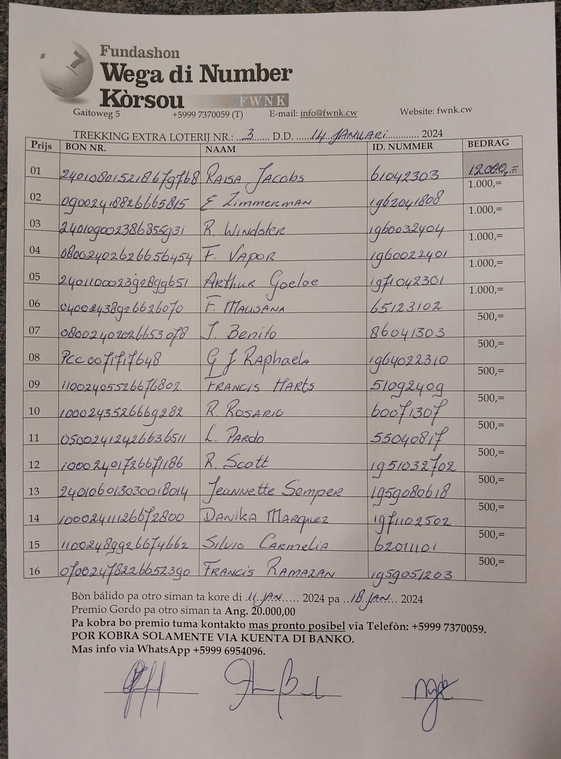 FWNK na telefòn: +5999 7370059 òf whatsapp: +5999 6954096.