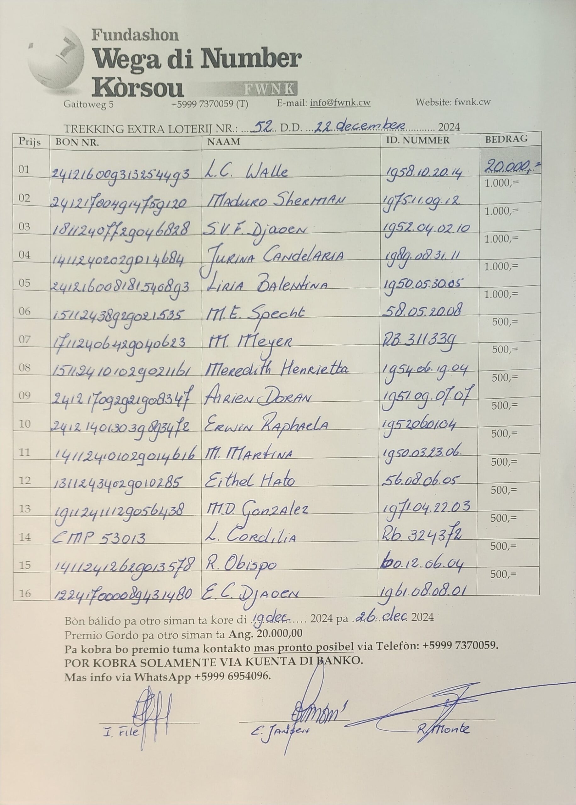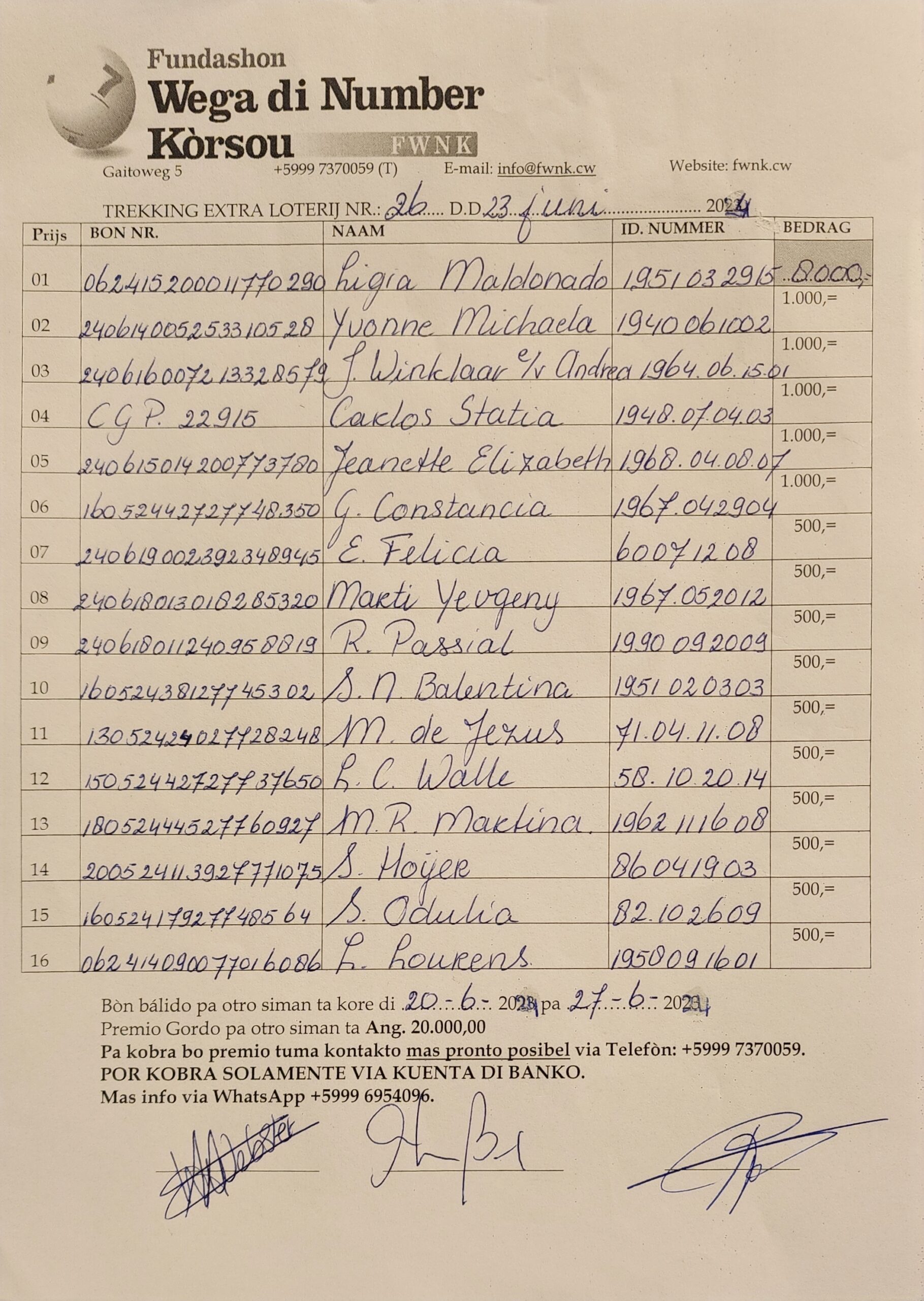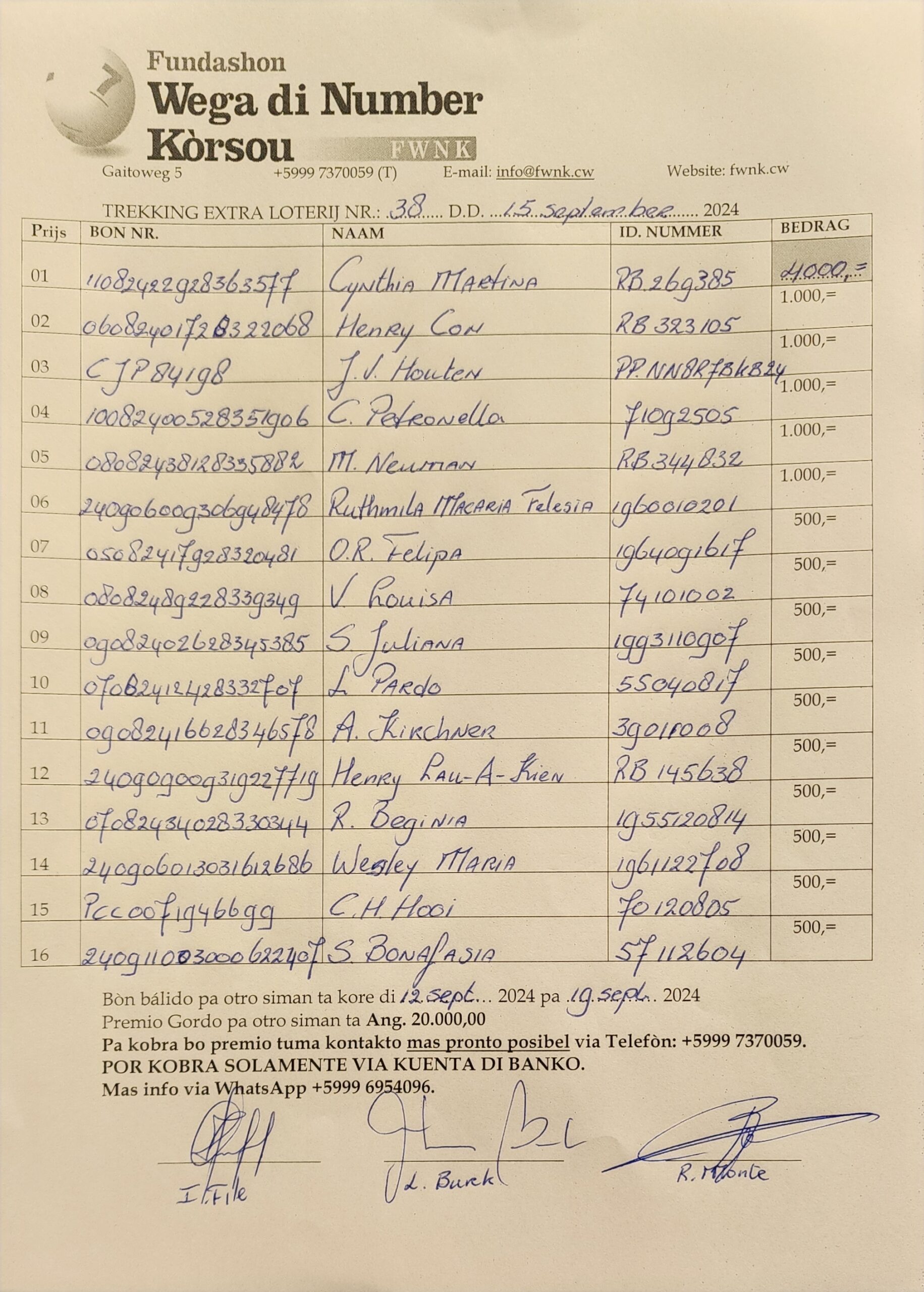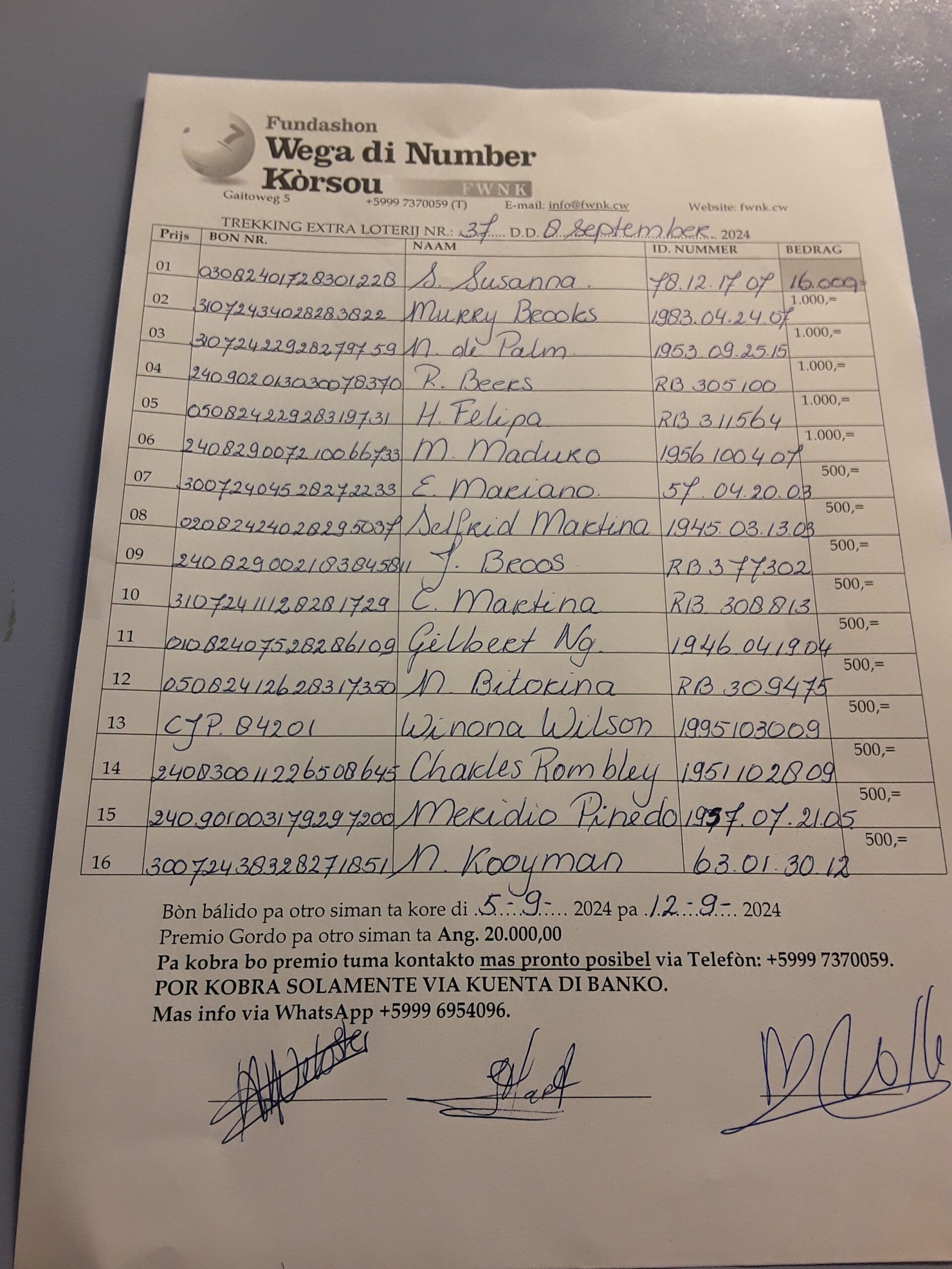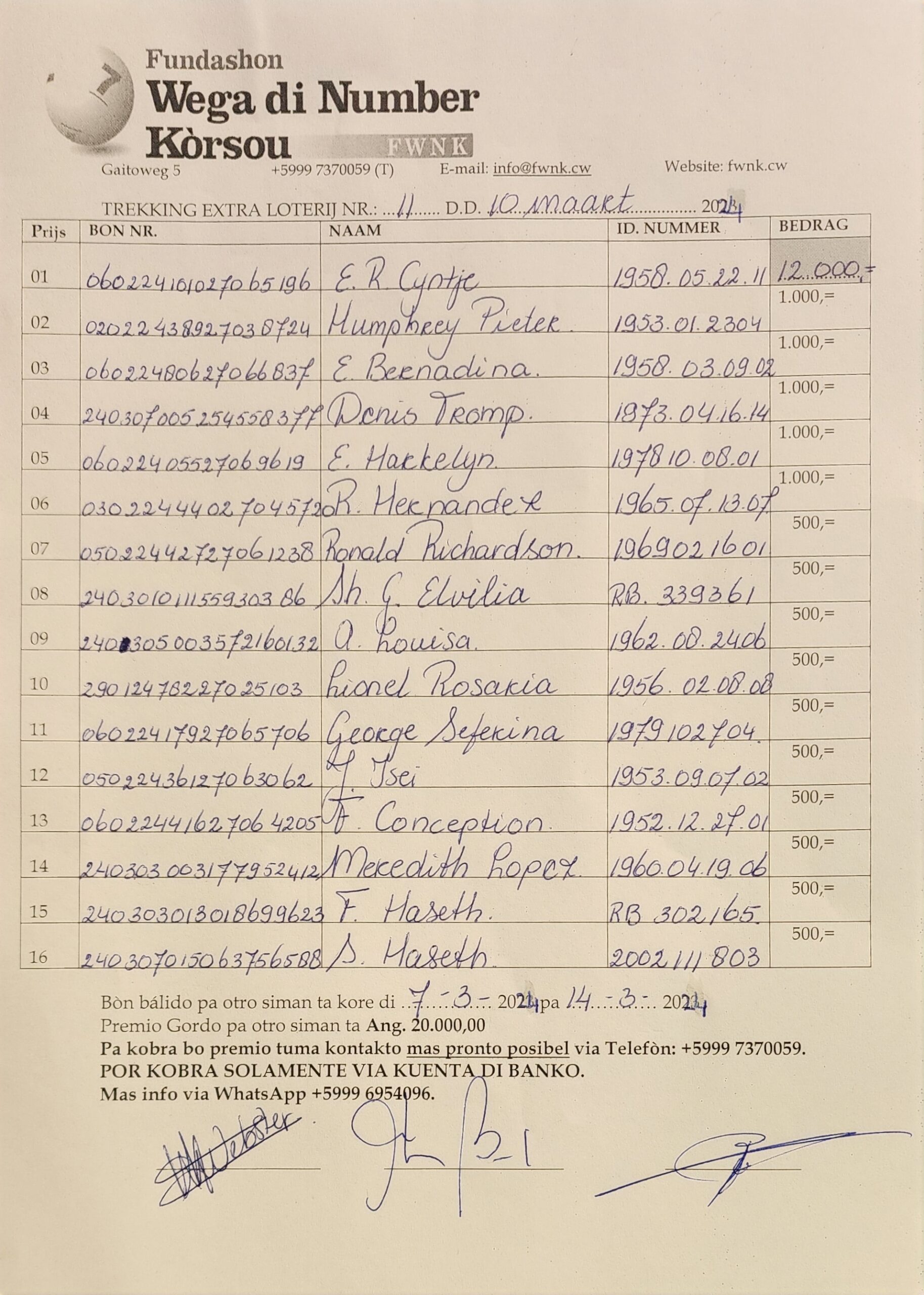FWNK na telefòn: +5999 7370059 òf whatsapp: +5999 6954096.