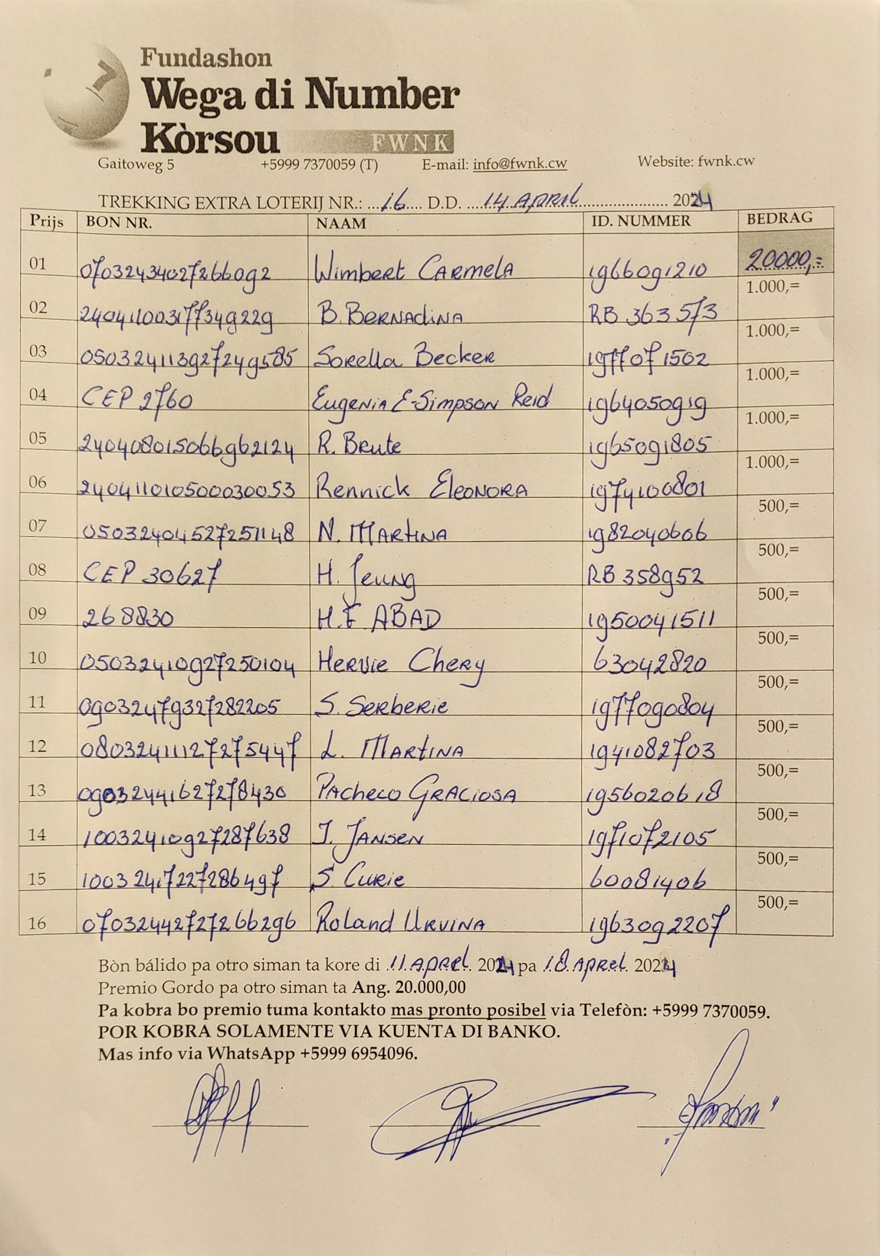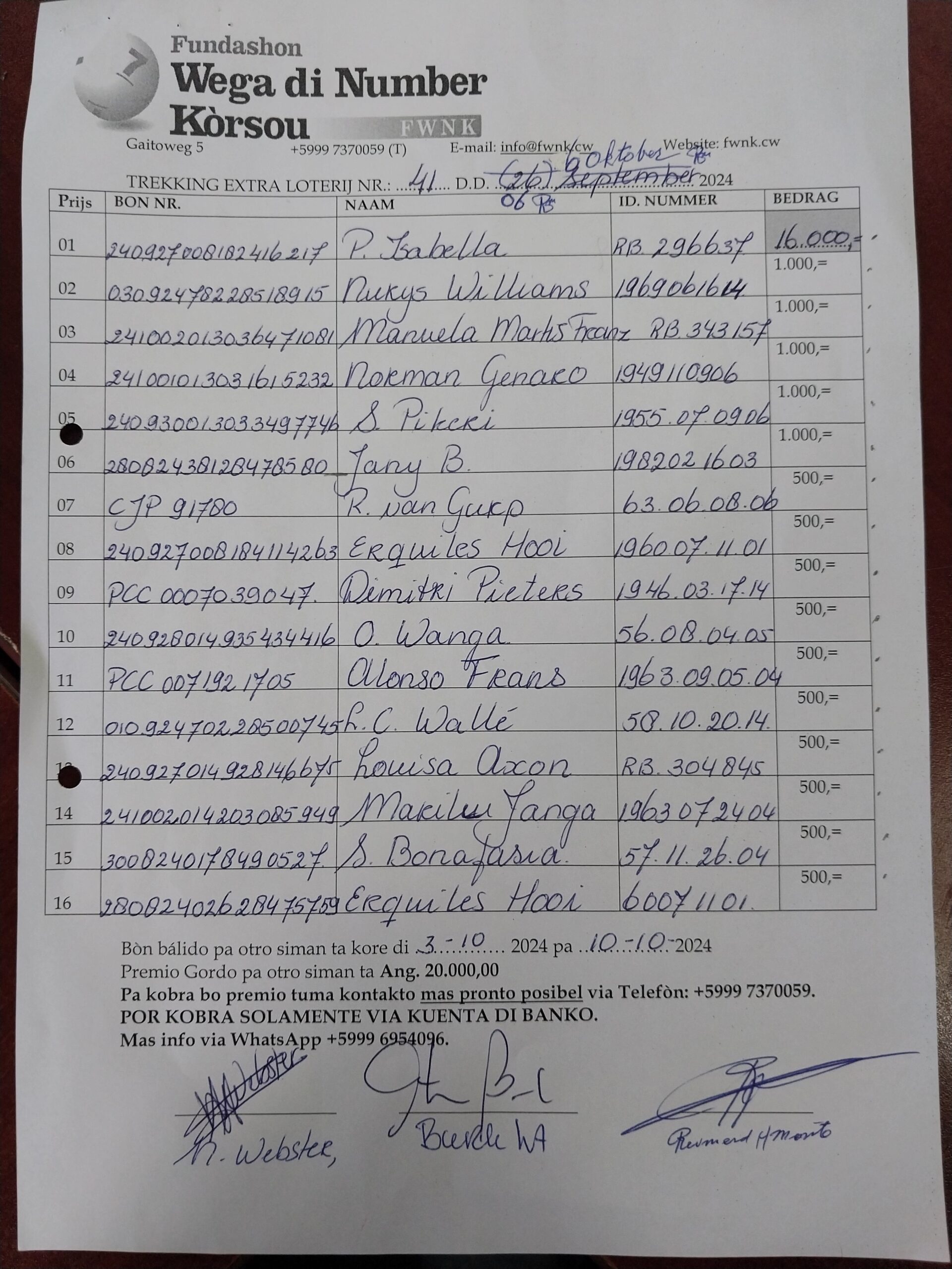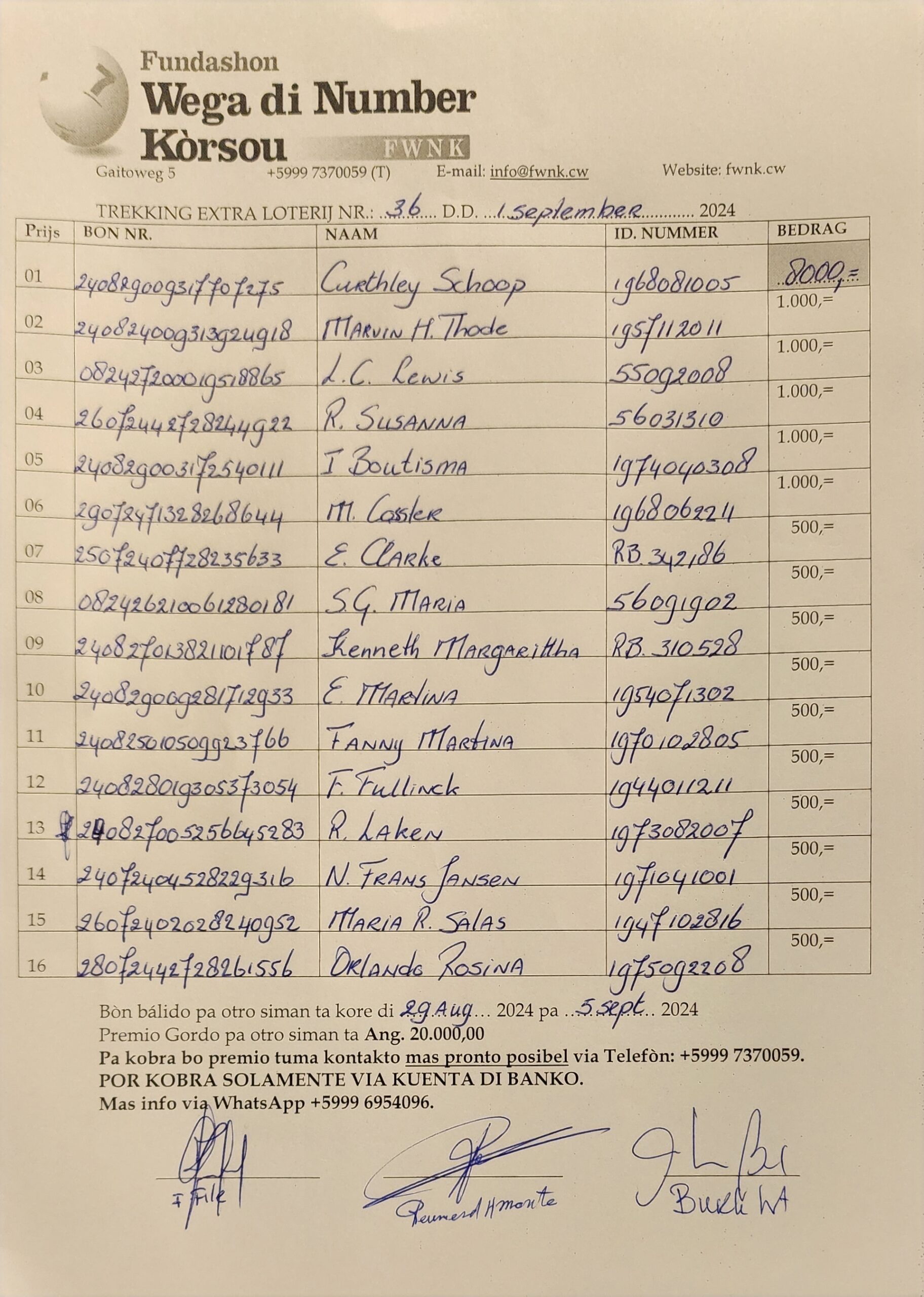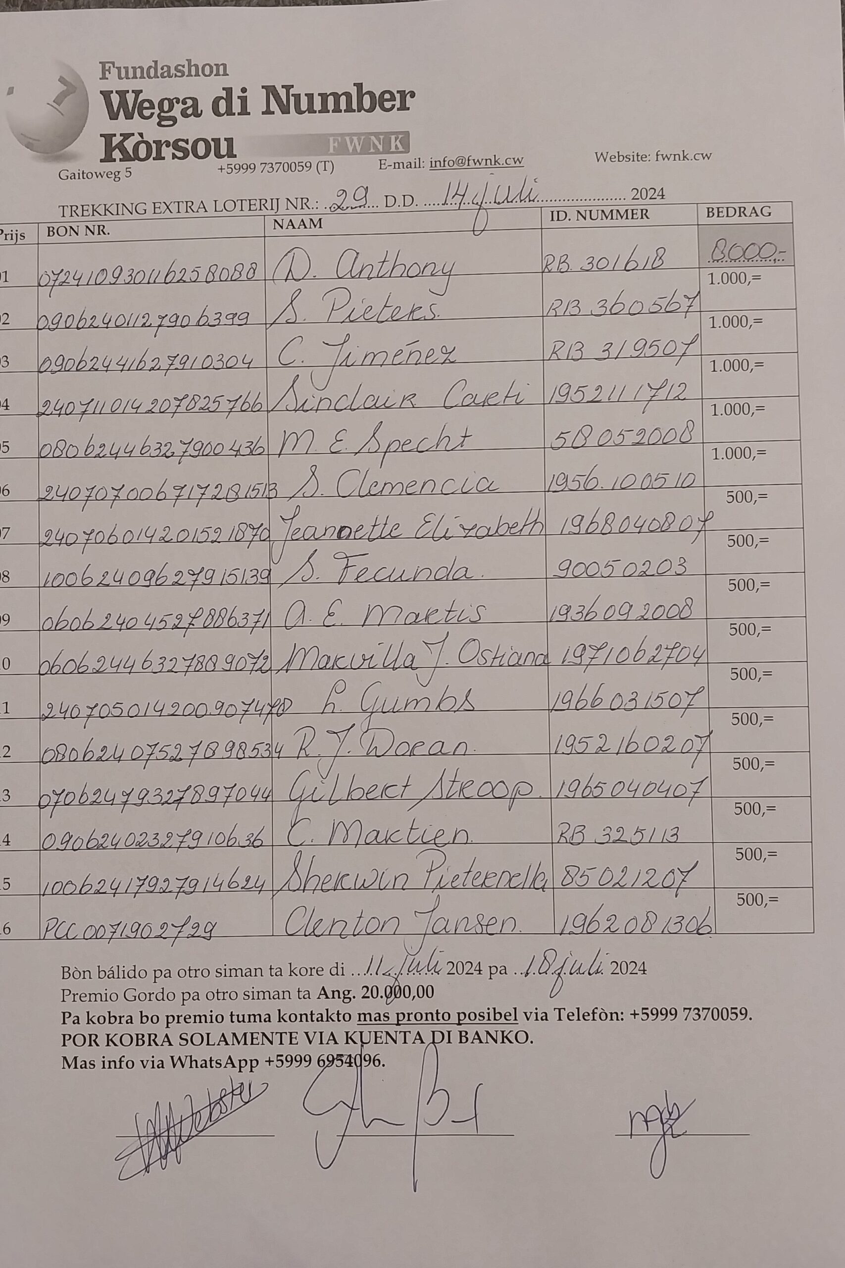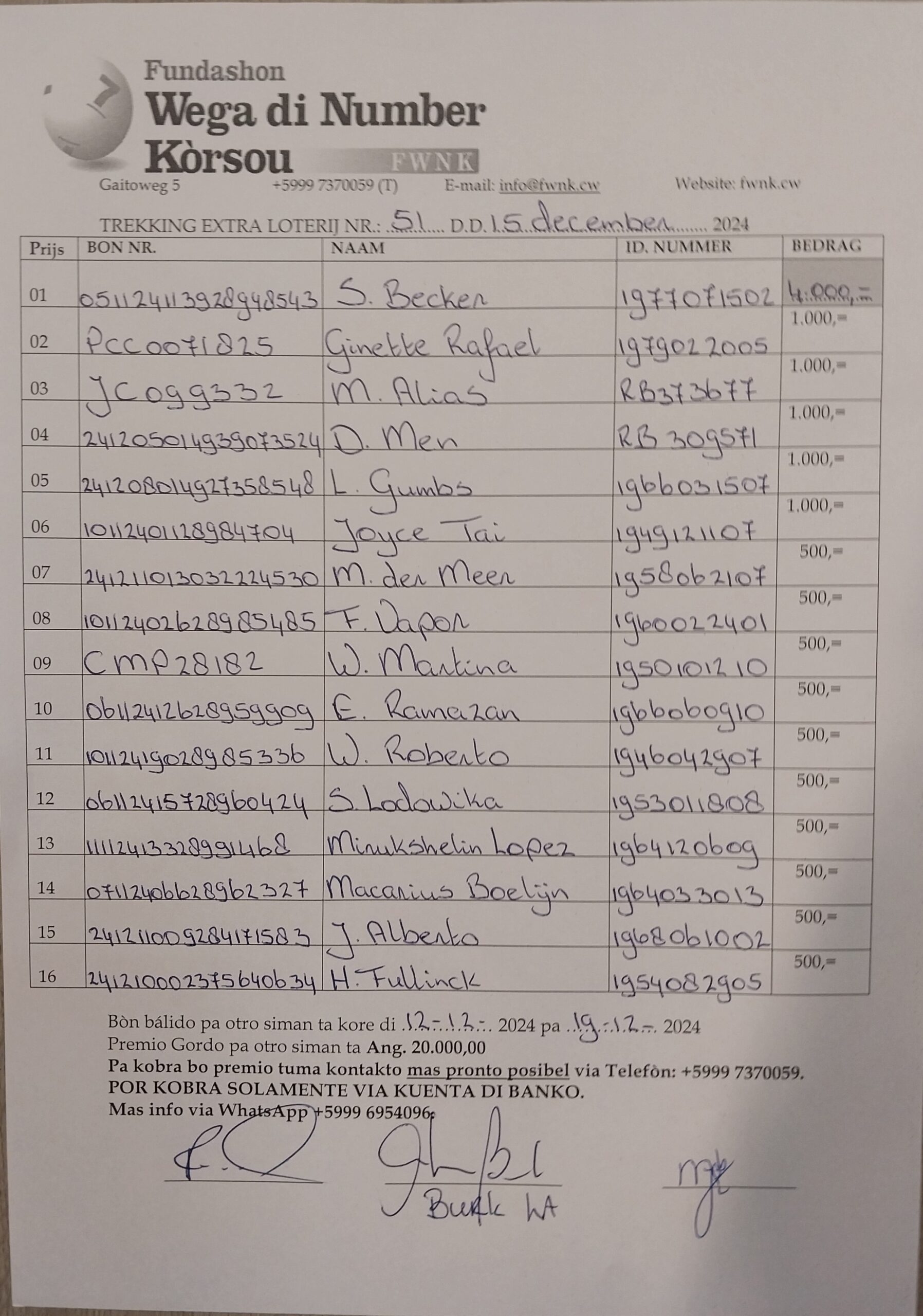 FWNK na telefòn: +5999 7370059 òf whatsapp: +5999 6954096.