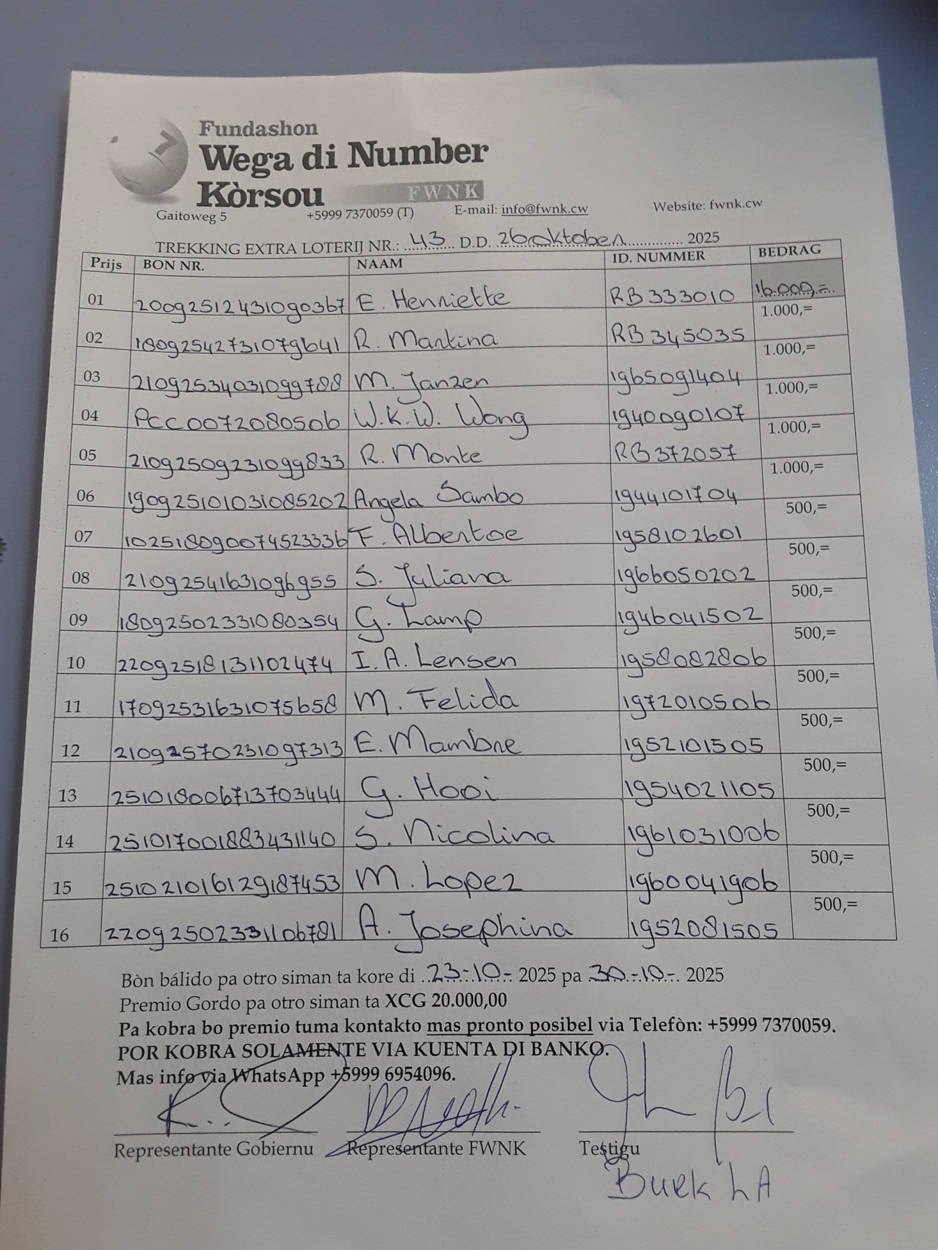 Sorteo Wega di Number Kòrsou i Sorteo Èkstra