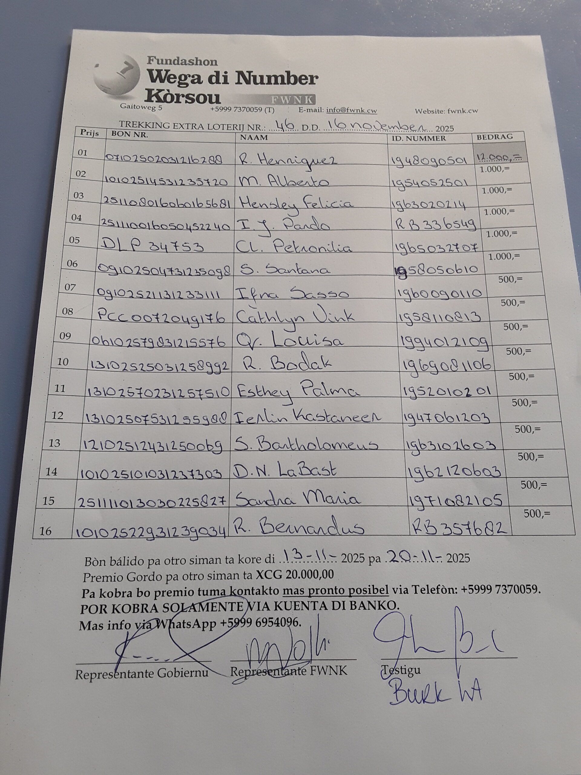 - Informá direktiva di Fundashon Wega di Number Kòrsou tokante froude i otro iregularidat relashoná ku aktividatnan atministrá i finansiá pa Fundashon Wega di Number Kòrsou i Sorteo Èkstra.